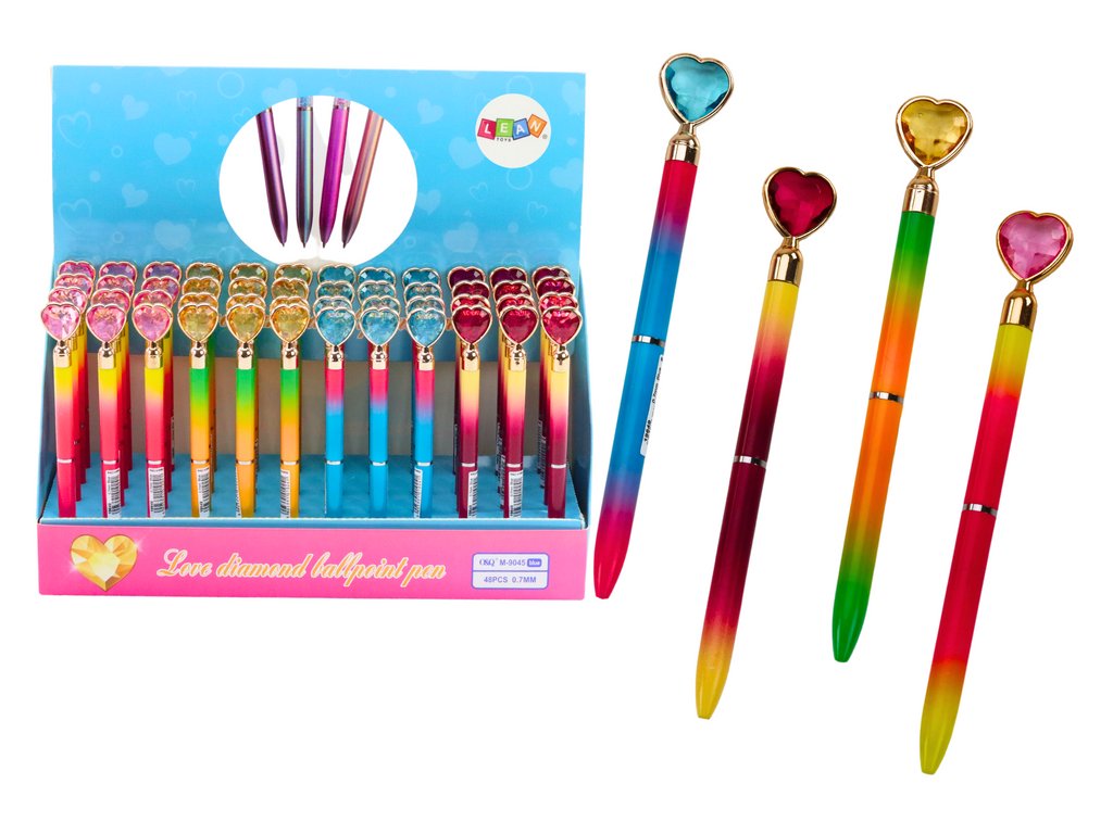 Tato jedinečná barevná propiska spojuje eleganci a funkčnost. Na jejím konci je srdíčko, které jí dodává poutavý vzhled. Modrý inkoust činí propisku ideálním společníkem pro každodenní použití i pro speciální příležitosti. Je to skvělá volba pro ty, kteří chtějí přidat šarm do svých poznámek nebo korespondence.