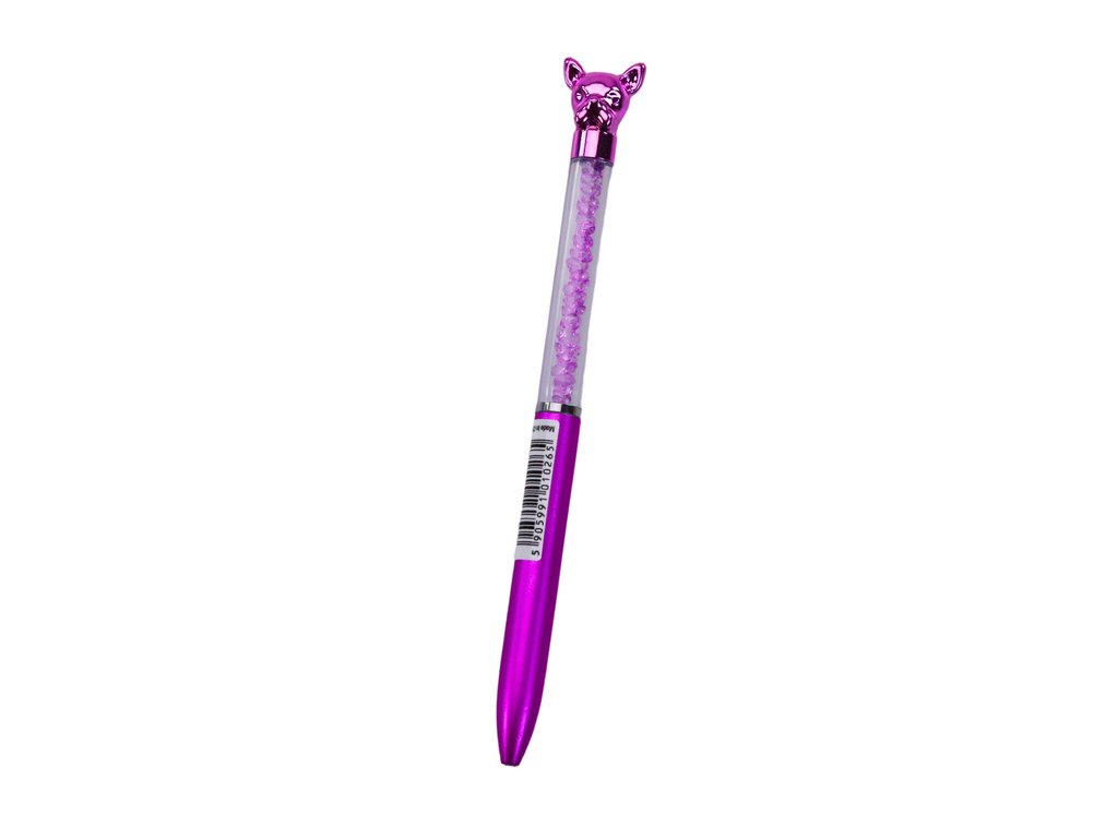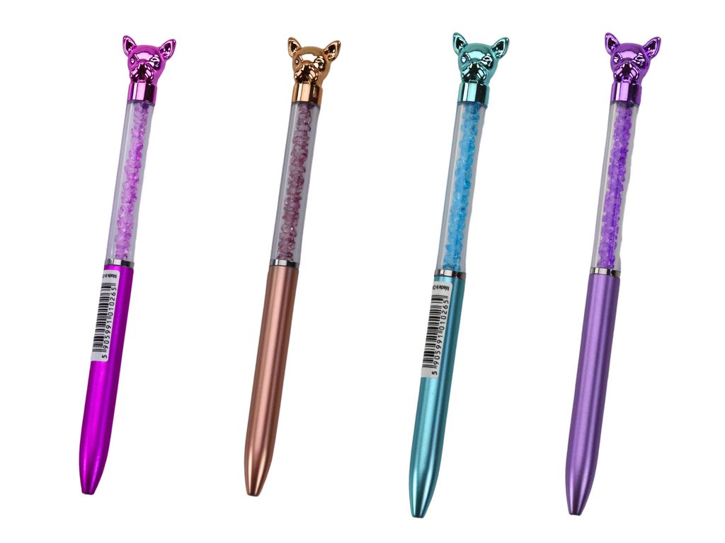 Tato výjimečná propiska je spojením elegance a funkčnosti. Na jeho konci se nachází pejsek, který mu dodává elegantní vzhled. Průhledné pouzdro naplněné drobnými, třpytivými diamanty vytváří efektní světelné odlesky, které podtrhují jeho luxusní charakter.
