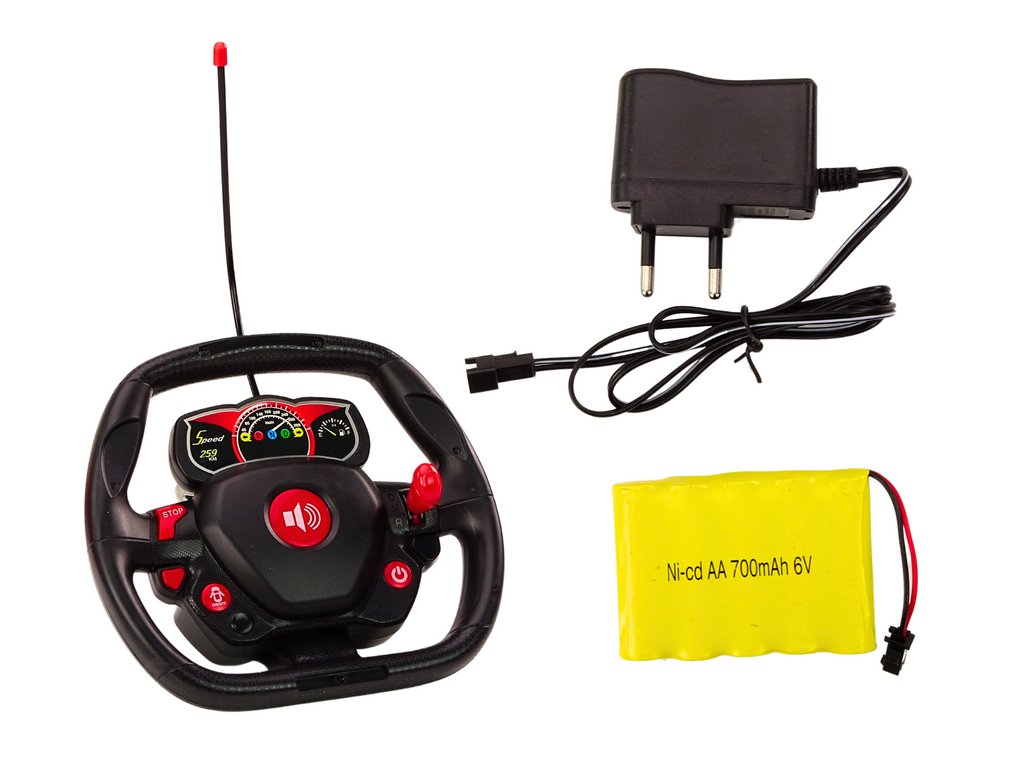 Zdalné ovládání pomocí dálkového ovladače 27HZ ve tvaru volantu nejenže poskytuje skvělou zábavu, ale také umožňuje každému dítěti cítit se jako skutečný řidič, objevující svět zpoza volantu.