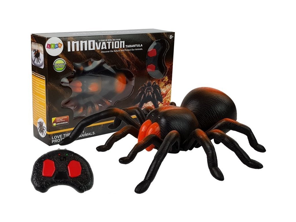 Pavouk na dálkové ovládání je skvělá hračka pro děti, které sní o svém vlastním teráriu. Oranžovo-černá tarantule má svítící oči. Dálkový ovladač má dva tlačítka, které umožní pavoukovi chůzi dopředu a dozadu.