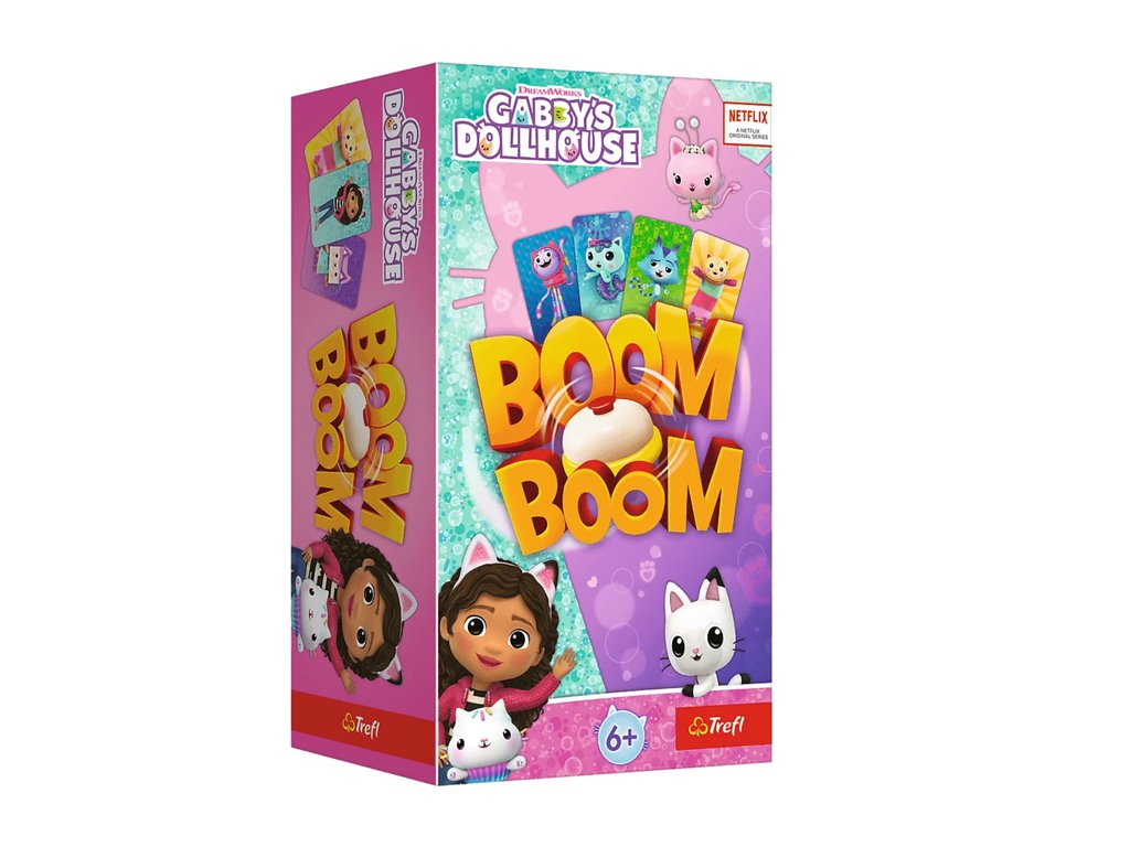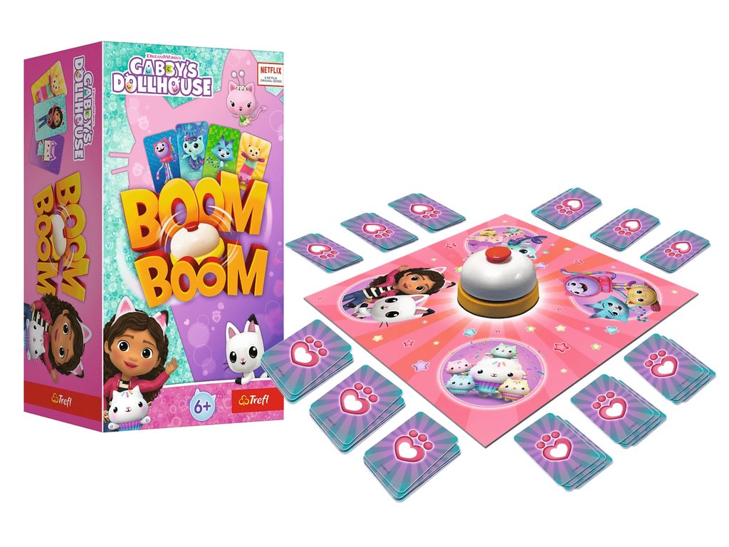 V edici hry Boom Boom se snažíte nasbírat karty stejného druhu s oblíbenými postavami z pohádky Kočičí domek Gabi. Všichni hráči hrají zároveň, vyměňují karty z ruky s těmi na ploše. Když nasbíráte sadu 4 stejných postav, udeříte na zvonek, což signalizuje splnění úkolu. Může se stát, že všichni usilujete o stejné karty – kdo bude nejrychlejší? Hráč, který jako první nasbírá všechny sady svých karet, se stává vítězem!