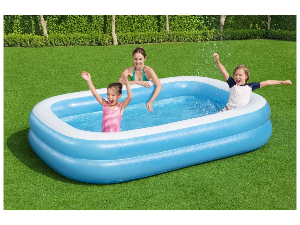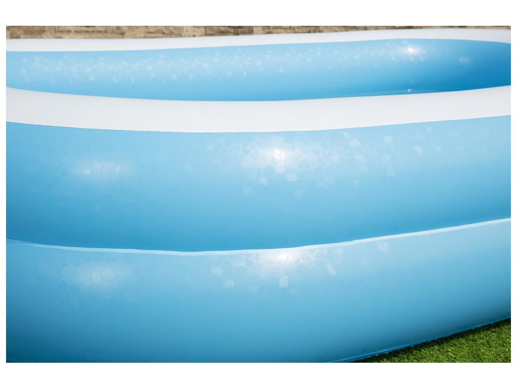 Velký, spolehlivý bazén pro celou rodinu, ve kterém mohou děti volně plavat. Bazén je lehký, takže ho můžete snadno přemístit tam, kde je v danou denní dobu nejtepleji. Snadno se nafukuje a vyfukuje, jeho skladování nebude problém.