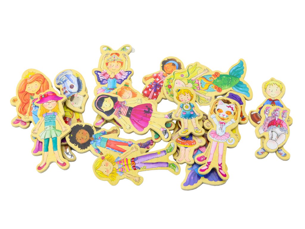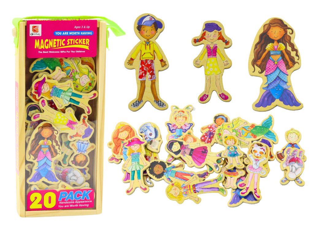 Sada dřevěných magnetek s veselými motivy postaviček nabízí dětem skvělou příležitost k rozvoji kreativity a představivosti. Každý z 20 magnetů představuje jinou postavu v různých kostýmech, což nejen baví, ale také pomáhá dětem při rozpoznávání různých charakteristických rysů a typů postav.