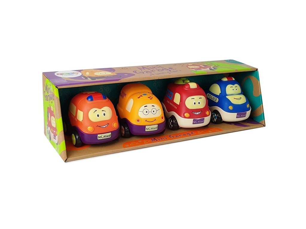 Sada autíček se skládá z vozidel různých typů, takže si chlapec může doplnit celou sbírku vozidel. Autíčka mají třecí pohon, takže při tahání dopředu a dozadu sama jezdí. Vozidla mají nejdůležitější prvky specifické pro vozidla, které v kombinaci s pestrými a výraznými barvami s obličeji na přední straně vypadají senzačně a působí velmi přátelsky.