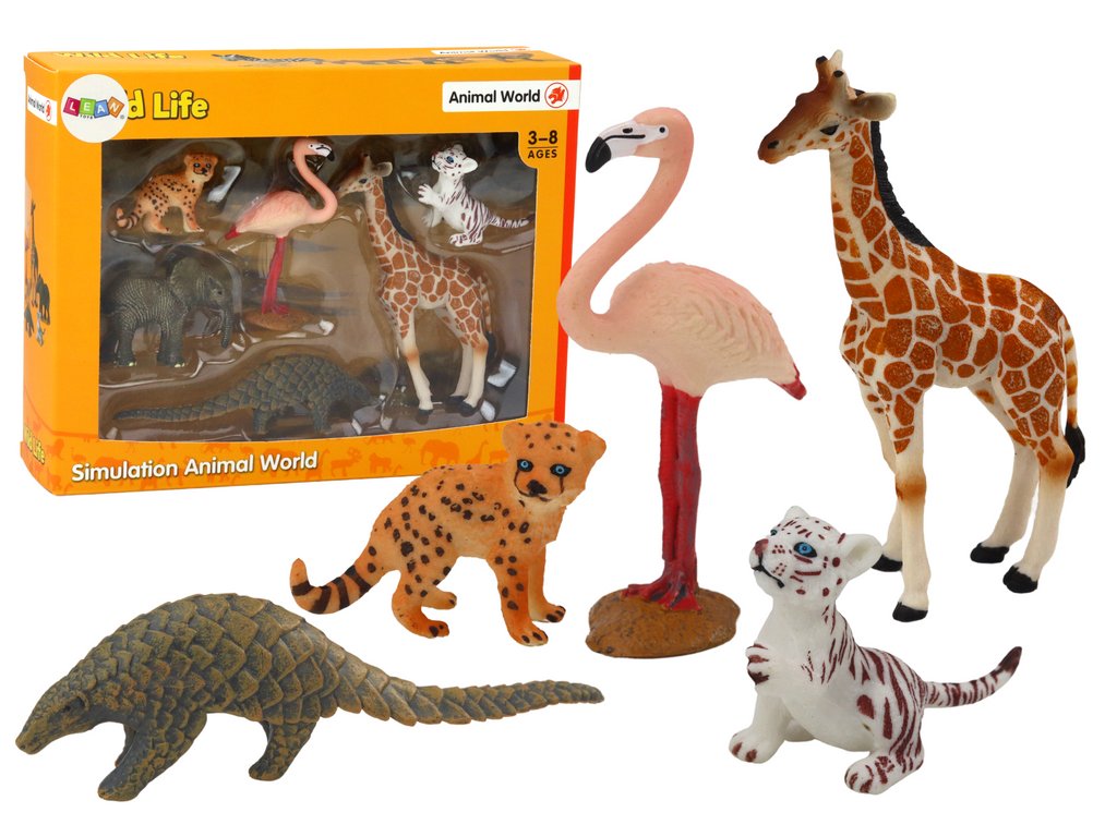 Sada figurek Zvířata Žirafa Plameňák Slon Tygr