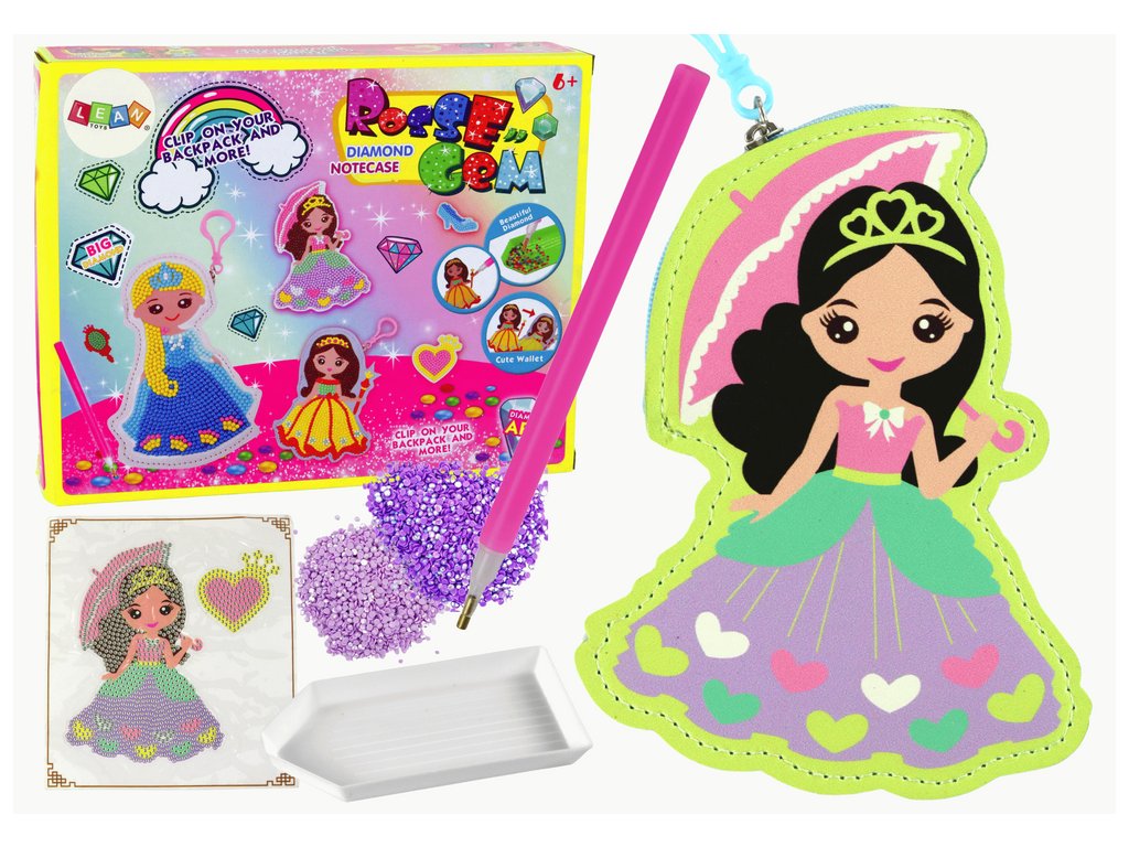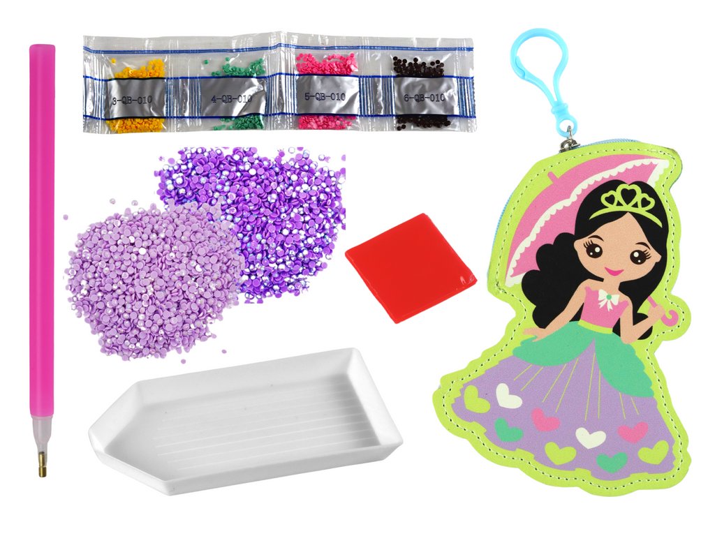 Tato sada s doplňky pro tvorbu unikátní klíčenky je skvělým nápadem především pro nejmladší. Inovativní technika vyšívacích diamantků umožňuje vytvářet vlastní design tím, že nalepíte malé diamanty na klíčenku s roztomilým motivem princezny, který je součástí balení.