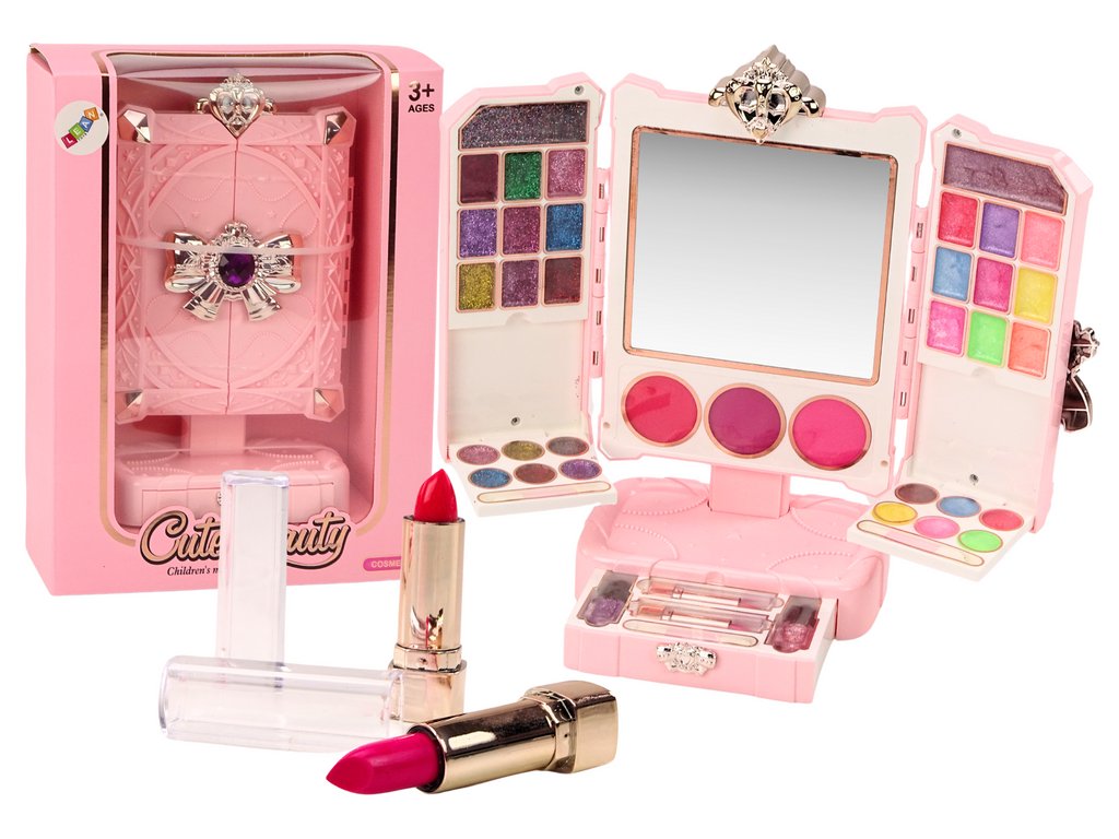 Zkrášlovací sada je snem každé malé milovnice krásy! Zrcátko na stojanu v jemné růžové barvě, zdobené elegantními stříbrnými akcenty, okouzluje nejen svým vzhledem, ale i funkčností.