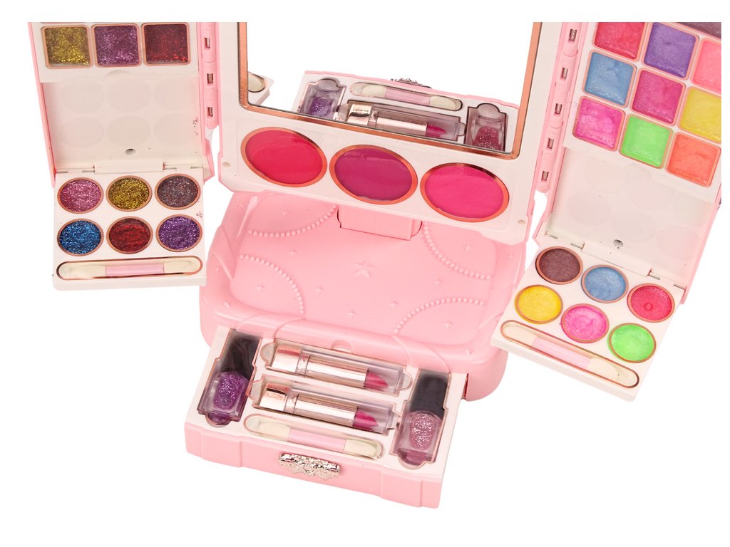 Po otevření kouzelných dvířek se objeví magické zrcadlo, díky kterému se každá holčička může cítit jako opravdová princezna. Uvnitř se nacházejí kosmetické potřeby, které vás přenesou do světa barev a lesku. Lesky na rty v různých odstínech, které přidají kouzlo každému úsměvu, a třpytky v různých tvarech a barvách pro vytvoření jedinečných, magických vzorů na kůži.