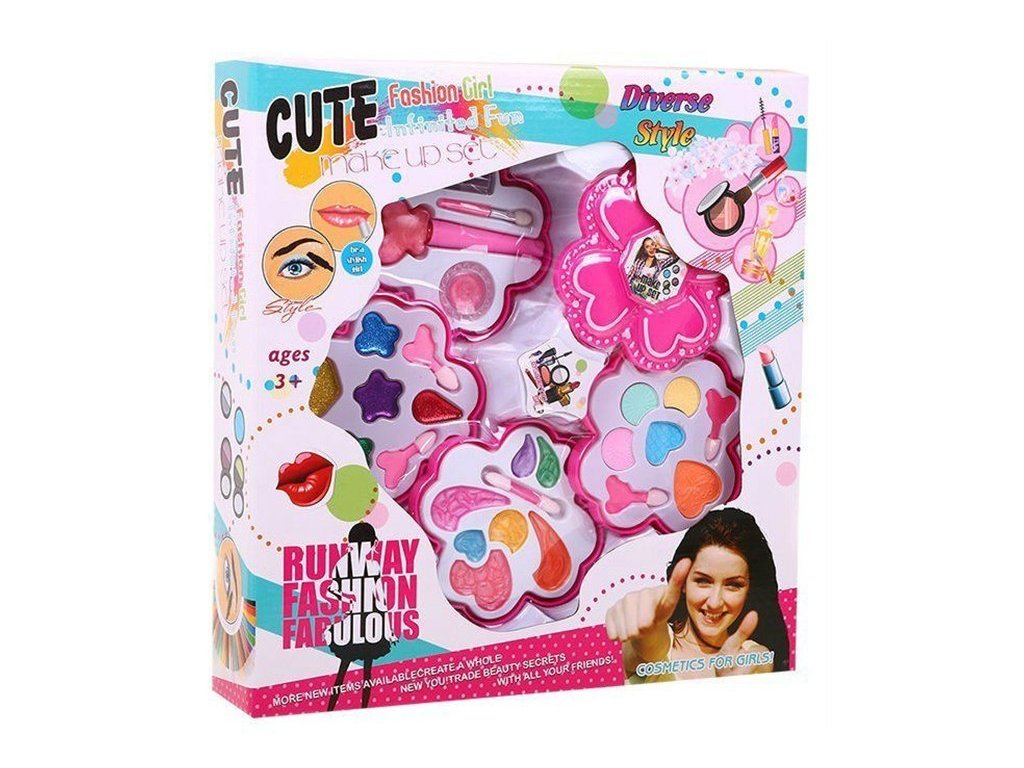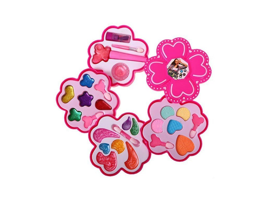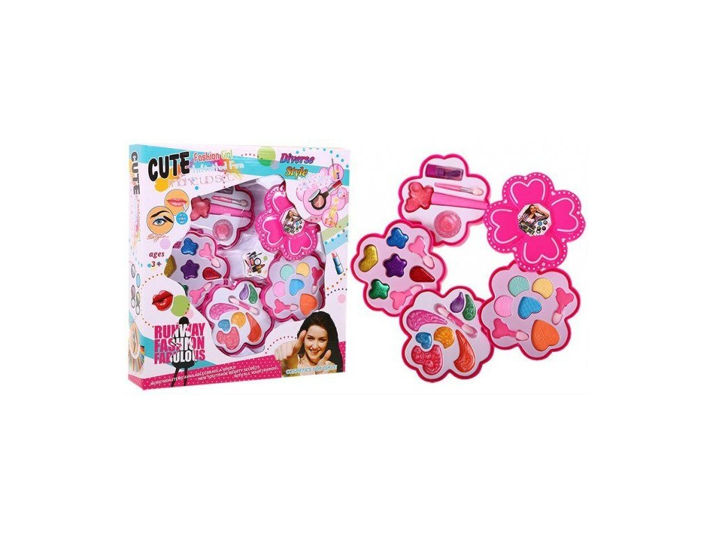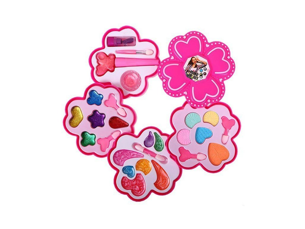 Fantastická sada make-up s rozkládací krabičkou. Obsahuje vše potřebné pro líčení - celou sadu barevných očních stínů, lesků na rty a rtěnek.