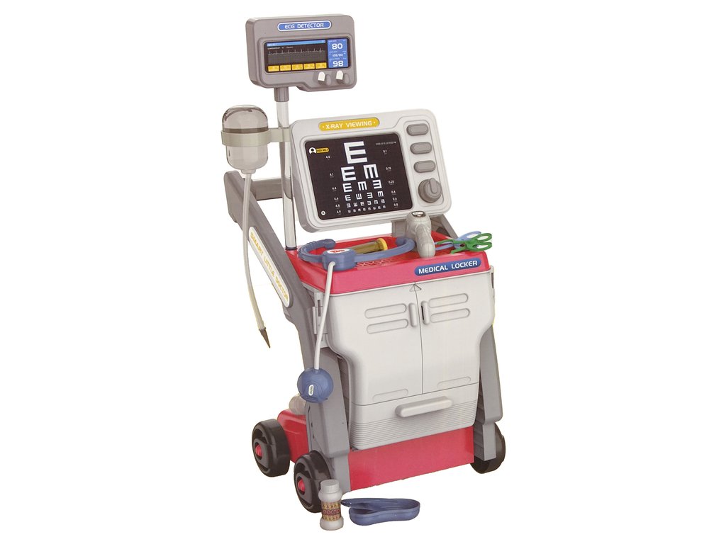 Představujeme vám růžovou sadu pro malé lékaře, která očaruje všechny nadšence medicíny. Součástí sady je "vozík" na kolečkách a také bohatý výběr nezbytných lékařských nástrojů, včetně injekce, nůžek a stetoskopu na baterie.