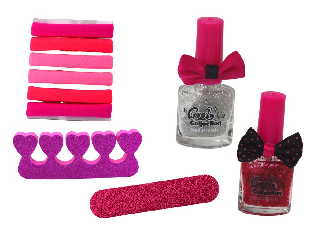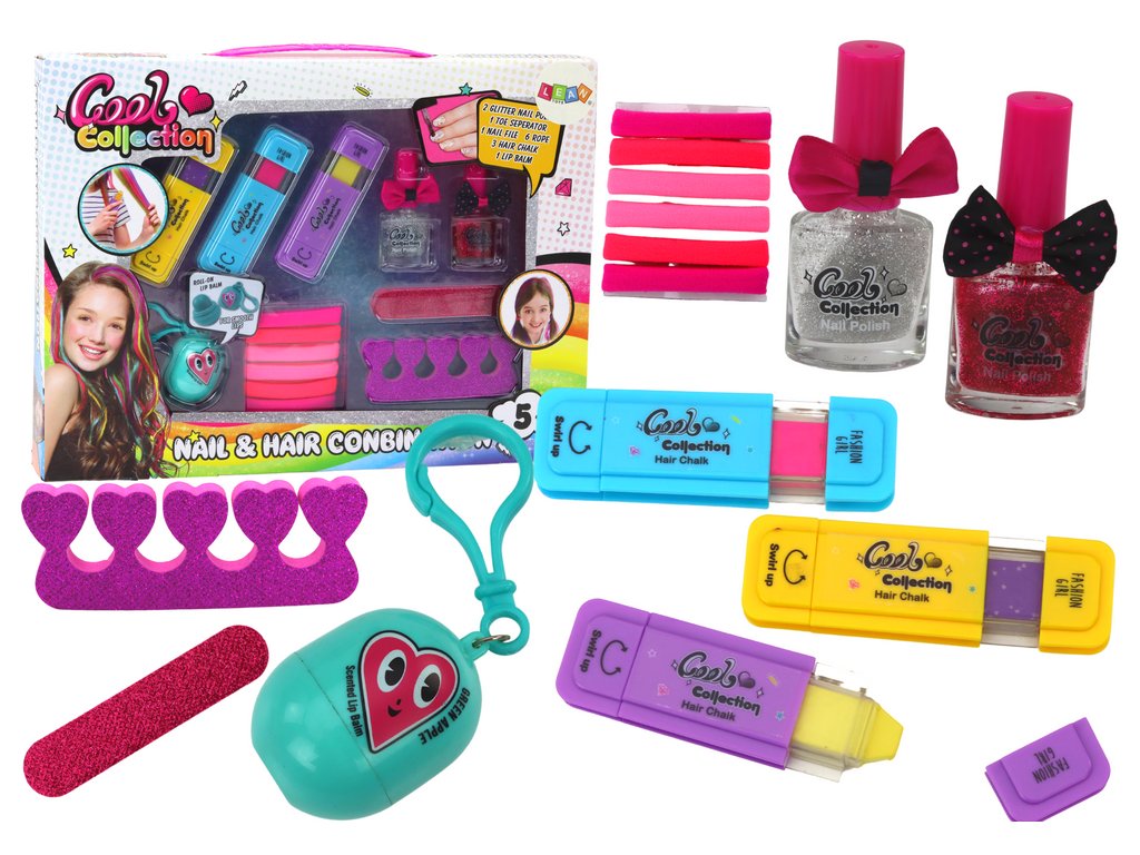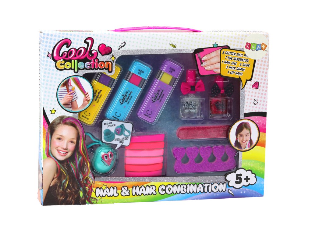 Sada je také určena pro stylizaci nehtů, nabízející separátor a pilník na nehty a dva lesklé laky v stříbrné a růžové barvě. Díky nim mohou děti zdobit své nehty libovolným způsobem, vytvářet unikátní vzory a efekty.