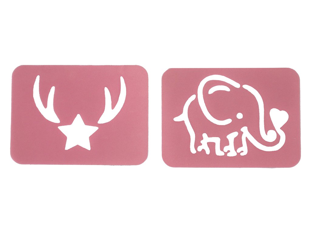 A to ještě není vše! Naše sada obsahuje také dvě šablony ve tvaru slona a hvězdy. Co je vyznačuje? Jsou větší než standardní, což znamená, že je můžeš využít k zdobení různých věcí. Slon a hvězda jsou roztomilé vzory, které dodají zvláštní kouzlo každému projektu tvé malířky.