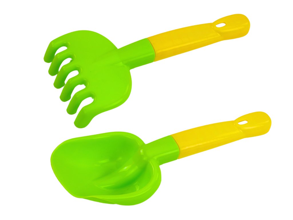 Souprava obsahuje také lopatku, která je základním nástrojem pro kopání, přenášení a formování písku. Lopatka umožňuje dětem stavět hrady, vytvářet tunely a jiné pískové struktury. Spolu s hráběmi, které jsou také součástí soupravy, mohou děti uhlazovat povrch písku, vytvářet různé vzory a objevovat ukryté poklady.
