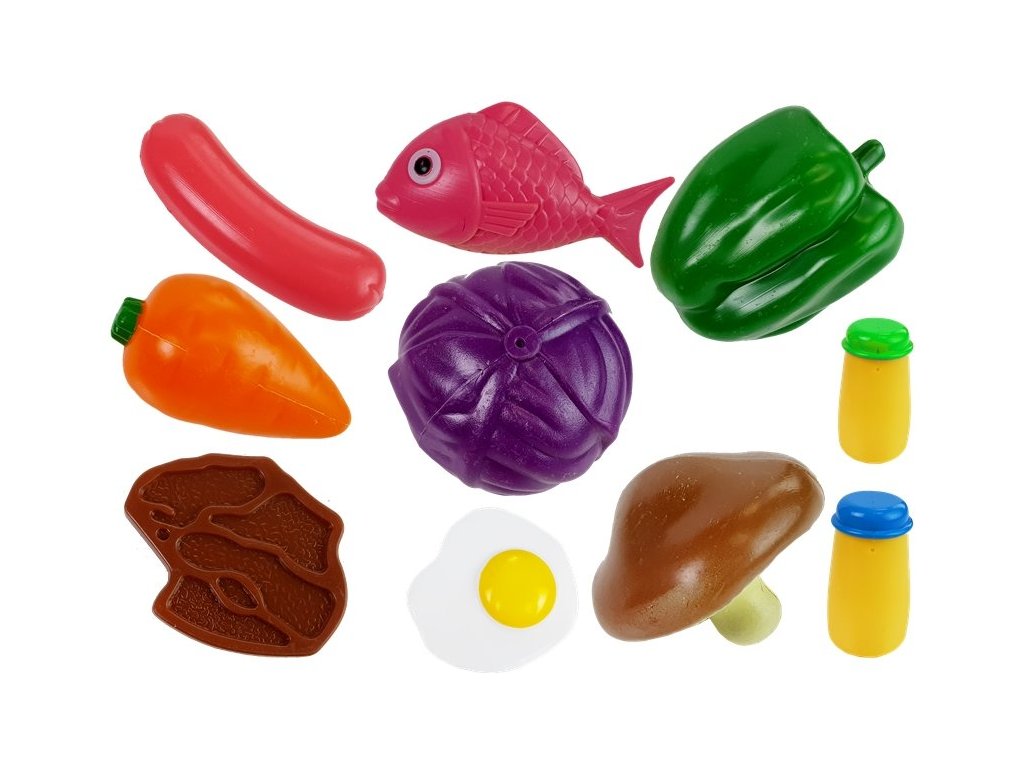 Vybavte dětskou kuchyňku krásným barevným nádobím a potravinami. Dětská kuchyňka musí být úplná a kreativní. Skvělá sada, která se skládá, nejen z nádobí, ale i potravin.