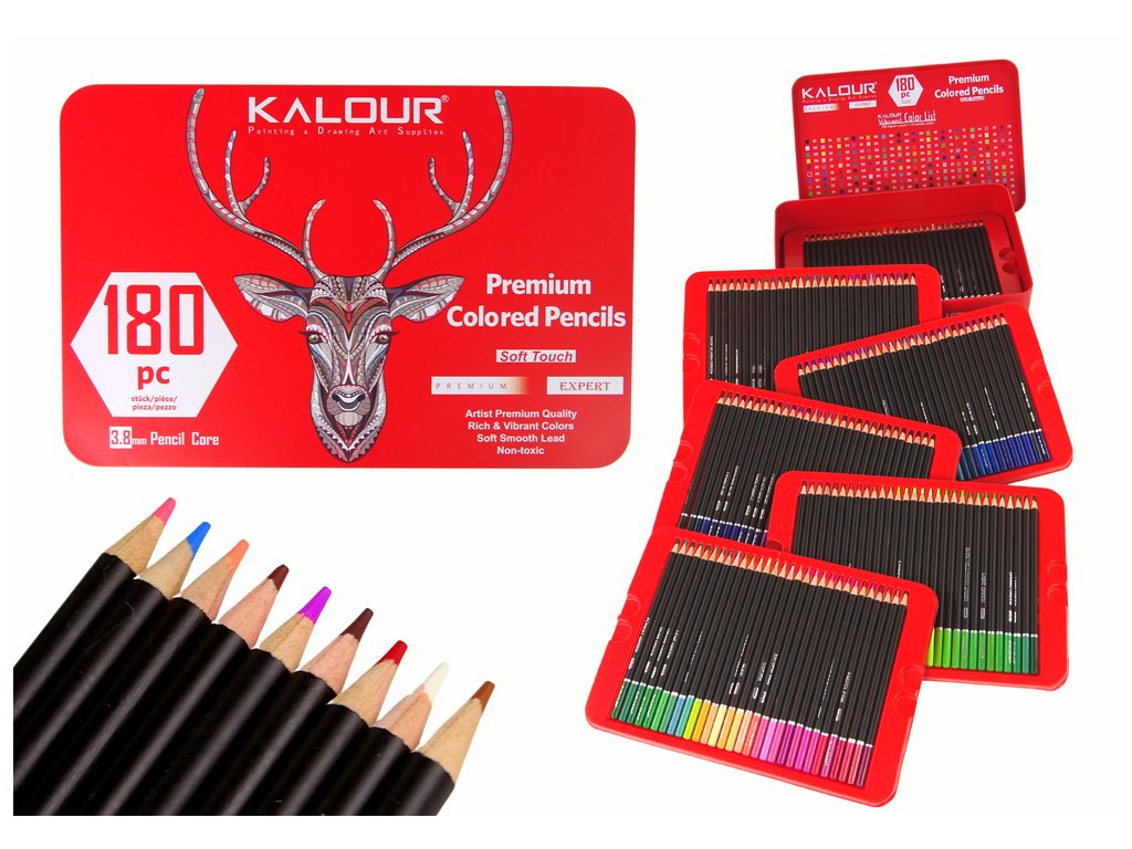 Sada 180 pastelek je snem každého umělce a milovníka barev. Tato kompletní sada nabízí mimořádnou pestrost barev, každá pastelka je přesně označena jménem a číslem. Sada obsahuje 168 běžných barev pastelek a 12 metalických barev, což zpestřuje vzhled děl.