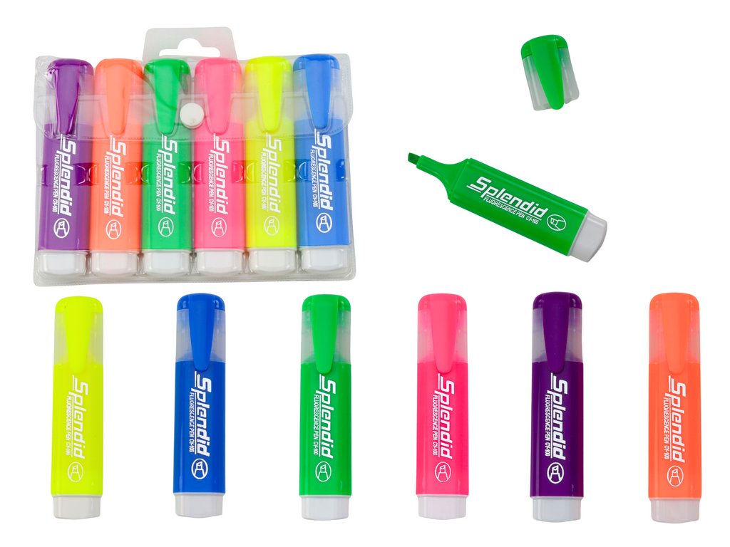 Sada 6 barevných zvýrazňovačů ideálních pro zdůraznění důležitých informací v poznámkách, dokumentech či knihách. Intenzivní barvy zajišťují dobrou viditelnost a ergonomický tvar usnadňuje pohodlné používání. Ideální do kanceláře, školy i domova.