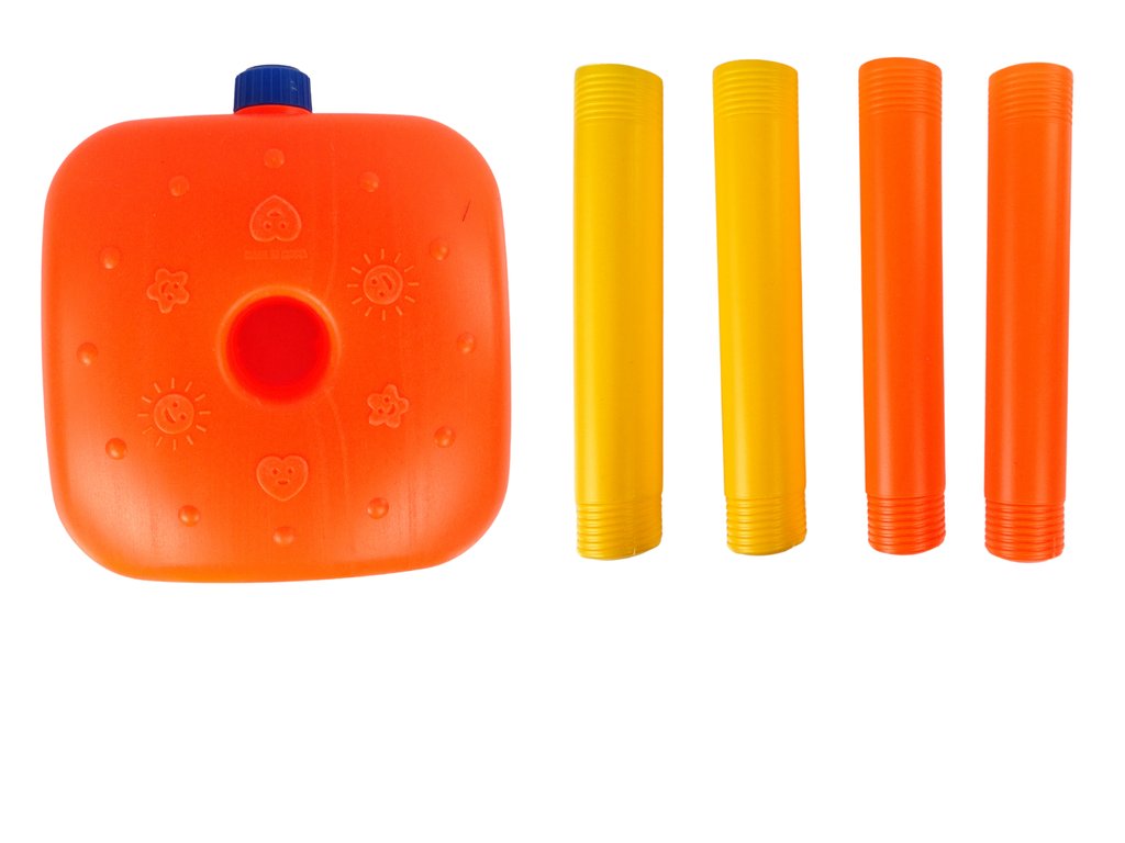 Stojan je vybaven základnou s otvorem pro naplnění vodou nebo pískem, což zajišťuje lepší stabilitu během hry a snižuje riziko převrácení.