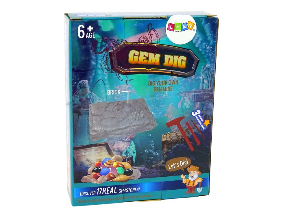 Úkolem dítěte je vykopat záhadné klenoty ukryté v sádře pomocí tří nástrojů.
