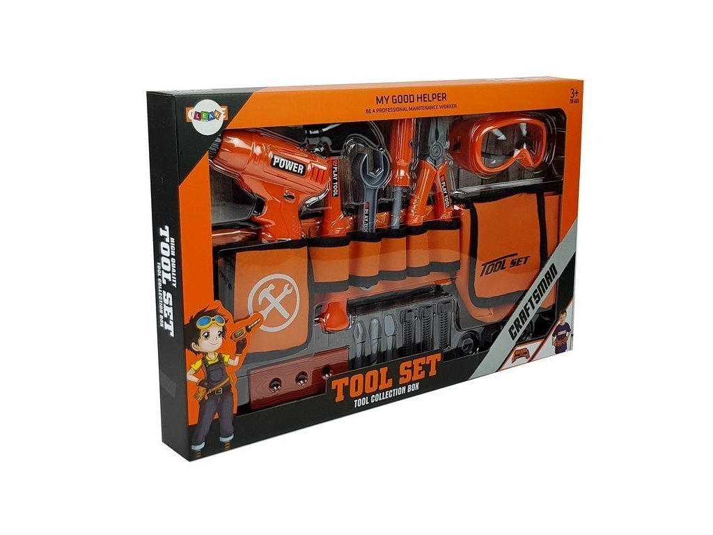 Opasek má mnoho kapes, do kterých se vejdou všechny nejnutnější věci. Vrtačka je perfektně tvarovaná pro malé ručičky, což usnadňuje její držení a provádění různých typů prací. Všechny prvky sady byly dokonale reprodukovány a vzájemně se doplňují.