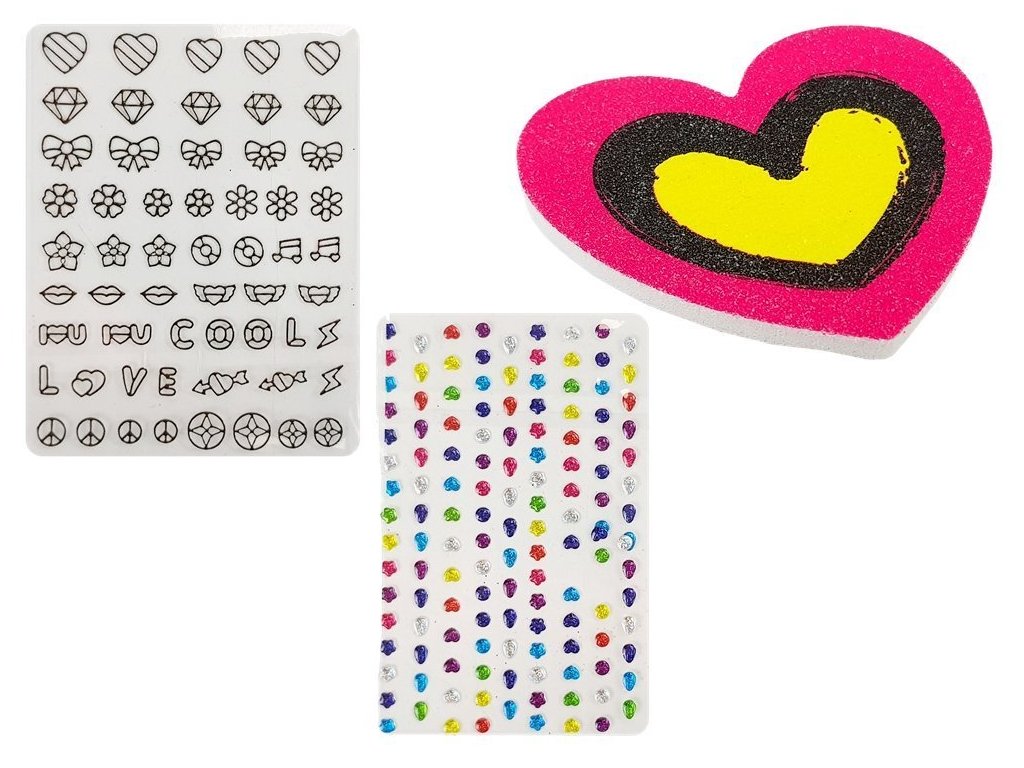 - - samolepky na nehty (barevné kamínky, květiny, srdíčka)