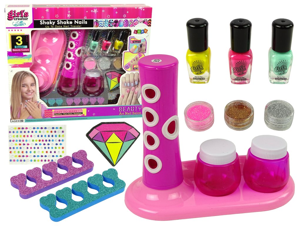 - Představujeme dokonalé řešení pro všechny maminky, jejichž dcery si potrpí na kosmetiku a obzvlášť si oblíbily lakování nehtů - vlastní sadu na manikúru. Lesklá, barevná sada laků a třpytek si získá srdce všech dívek. Módní barvy a samolepky umožní vytvořit parádní manikúru, kterou lze rychle a neinvazivně odstranit - funguje na principu samolepek. Je čas udělat si společnou manikúru! Zábava naučí vaše dítě preciznosti a umožní mu podnítit fantazii a kreativitu.