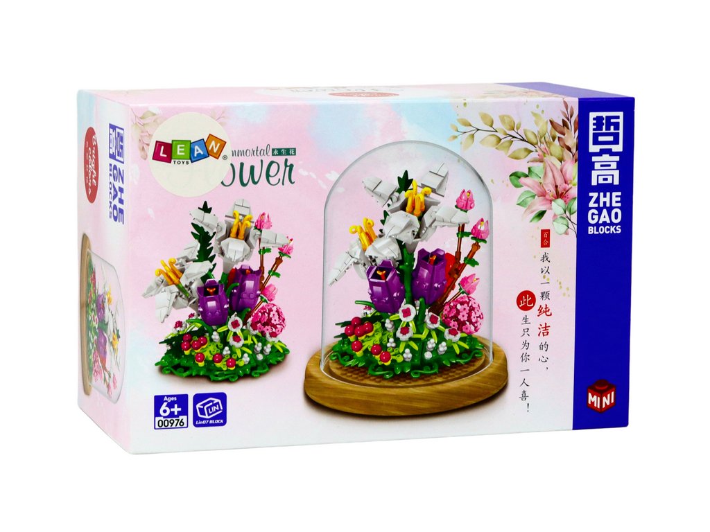 Sada stavebnice květiny ve skle je víc než jen hračka, představuje kreativní dobrodružství a jedinečný dekorativní předmět. Skládá se ze 487 dílků, včetně barevných bloků, vitríny a návodu krok za krokem. Tato sada umožňuje vytvořit nezapomenutelnou ozdobu. Návod je průvodcem procesem tvorby a umožňuje dětem i dospělým krok za krokem sestavit krásnou květinovou kytici. Každý si tak může užít tvorbu vlastní osobní ozdoby a zároveň rozvíjet svou představivost a manuální zručnost.