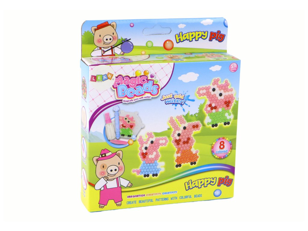 Sada navíc obsahuje dva talířky ve tvaru čtverce a šestiúhelníku pro vytváření různých vzorů a kompozic. Lahvička s vodou umožňuje korálky snadno namočit, aby se daly slepit.