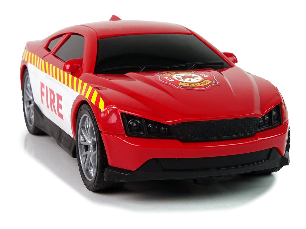 - Auto má výrazné požární nálepky, tónovaná okna a gumové pneumatiky. Na rovném povrchu dosahuje neuvěřitelné rychlosti.