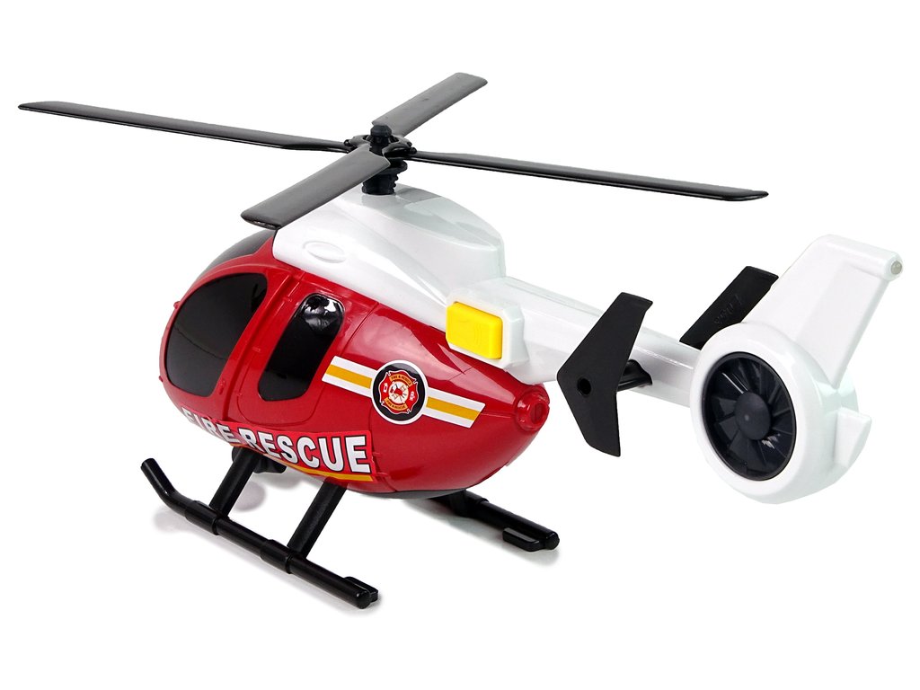 - Velký červený vrtulník má pohyblivé a otáčející se vrtule, které se uvádějí do pohybu ručně a vytvářejí dojem letu. Rozpětí vrtulí je celých 20 cm. Na boku vrtulníku se nachází tlačítko, které aktivuje světelné a zvukové efekty, díky nimž je hraní ještě zábavnější! Zvuk vzletu a letu umožňuje realističtější pocit.