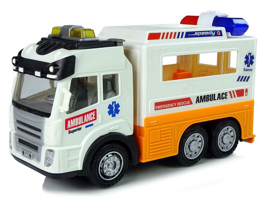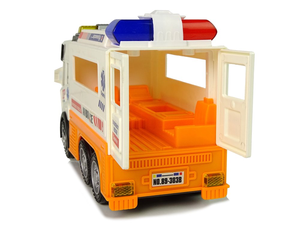 Autíčko má světelné a zvukové efekty. Další výhodou jsou otevírací zadní dveře - uvnitř je vidět dokonale reprodukovaný interiér a místo pro lékařské vybavení.