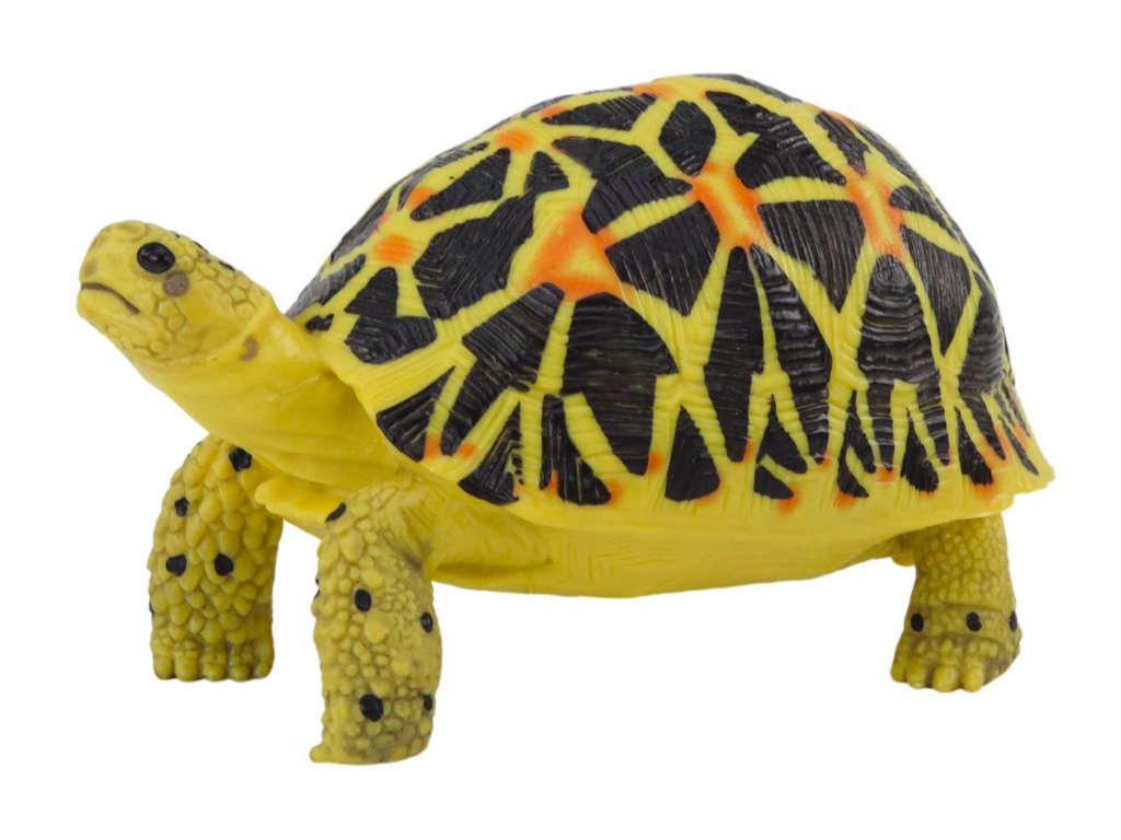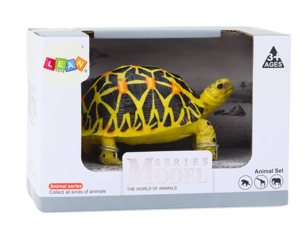 Barevné provedení figurky zahrnuje žluté barvy, které jsou jemně protkány černými prvky na krunýři, což zvyšuje její realističnost a přirozenost. Želva, jako jeden z druhů plazů, je zobrazena věrně skutečnosti, což může pomoci dětem lépe pochopit vzhled a vlastnosti těchto zvířat.