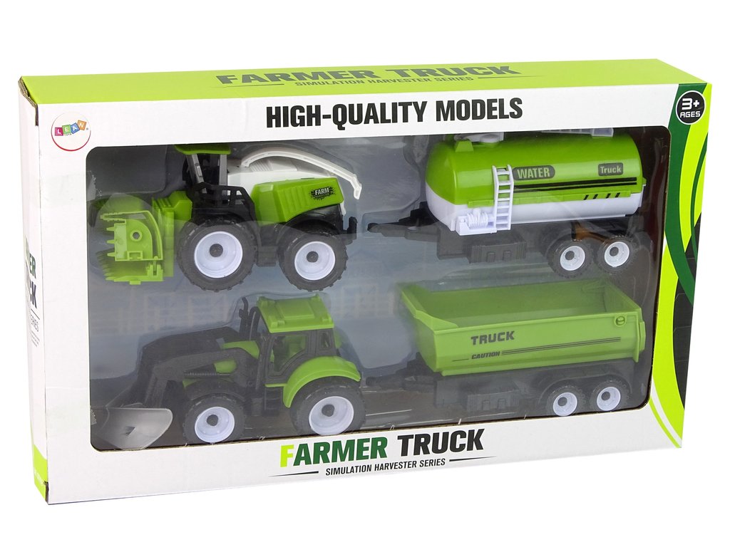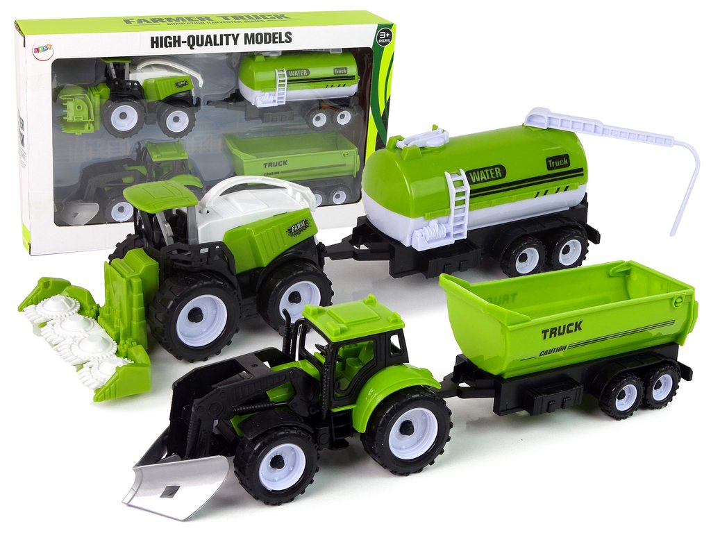 Sada se skládá ze dvou traktorů zelené barvy a dvou cisteren a návěsů, z nichž každý má jinou funkci. První z nich je cisterna rozvážející vodu, druhý převáží obilí. Sada rozvíjí dětské znalosti o práci na venkově a fungování strojů. Traktor na přední straně má pluh a hrábě. Stroje mají pohyblivé části, které ukazují, jak fungují v reálném životě.