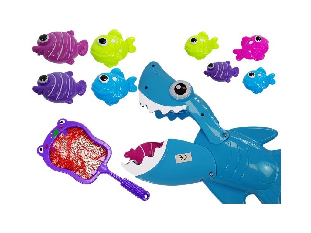 Skvělá sada mořských živočichů, která zpříjemní koupel vašeho dítěte. Hlavním prvkem sady je žralok, který pojídá ostatní malé rybičky. Tlama žraloka se dá zavřít, aby mohl "spořádat" rybky, součástí je síťka na lovení rybiček.