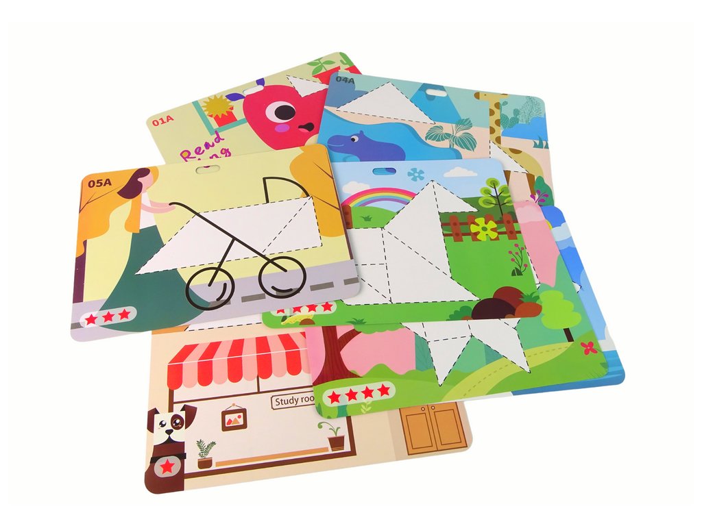 Sada navíc obsahuje 16 obrázků s jednoduchými úkoly, které dětem pomohou poznat různé tvary a jejich vlastnosti.