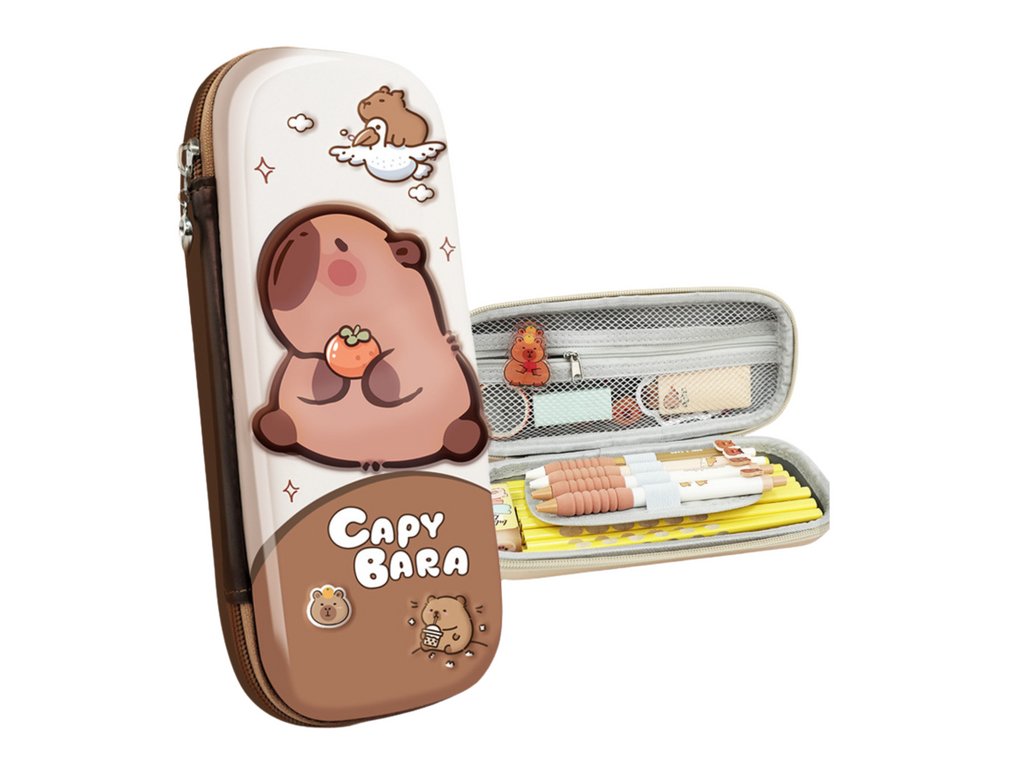 Dodejte svému školnímu vybavení špetku kouzla s roztomilým penálem s motivem kapybary. Tento penál je nejen praktickým řešením pro uložení všech nezbytných školních potřeb, ale také stylovým doplňkem, který vykouzlí úsměv na tváři každého studenta.