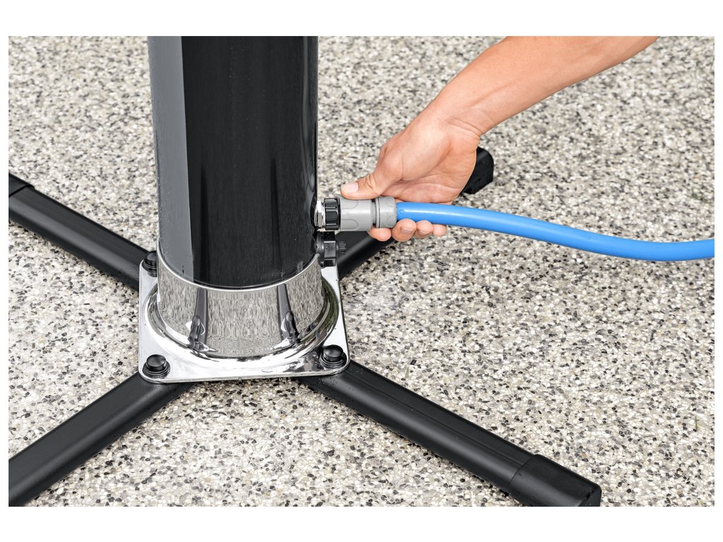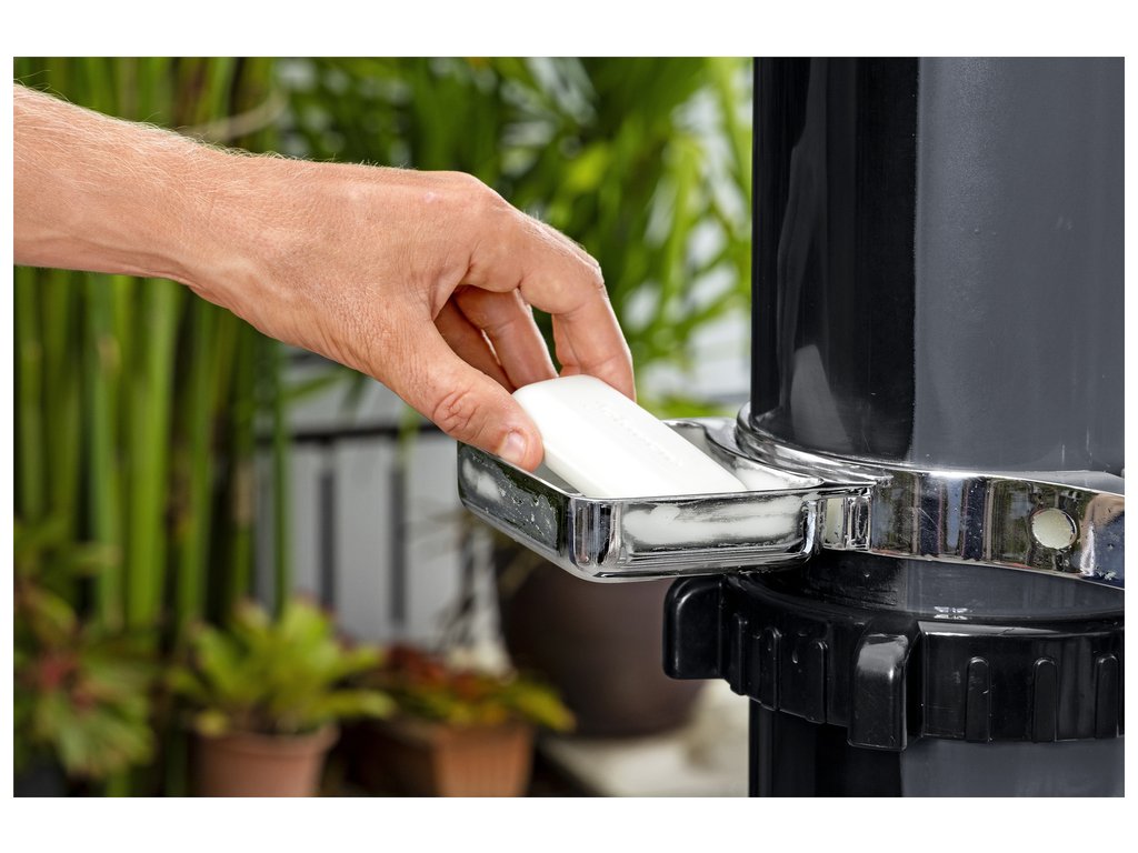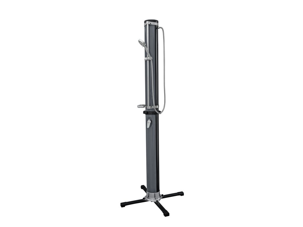 Obsahem balení jsou veškeré potřebné montážní prvky. Pevný podstavec zajistí stabilitu. Sprcha je vyrobená z odolného materiálu, který zaručuje dlouhou životnost výrobku a odolnost vůči povětrnostním podmínkám.
