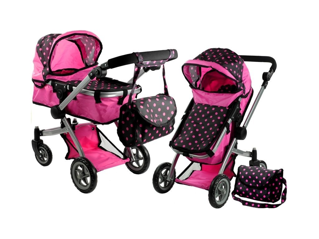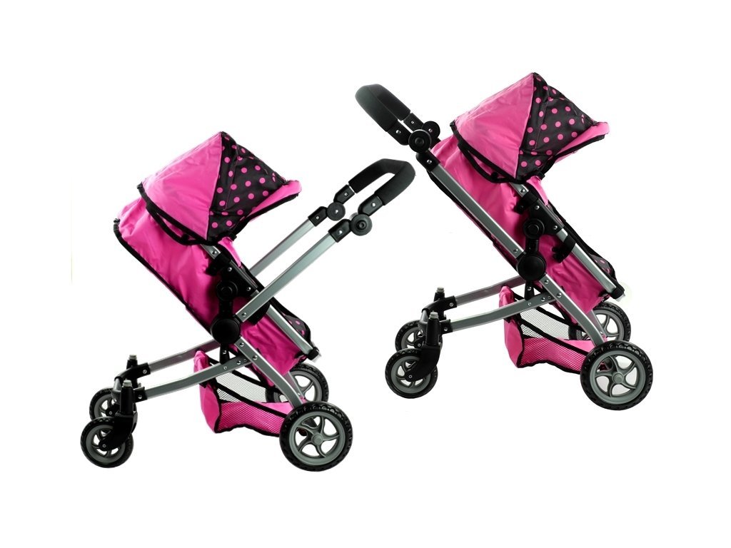 Kočárek pro panenky Alice 2v1 růžovo-černý