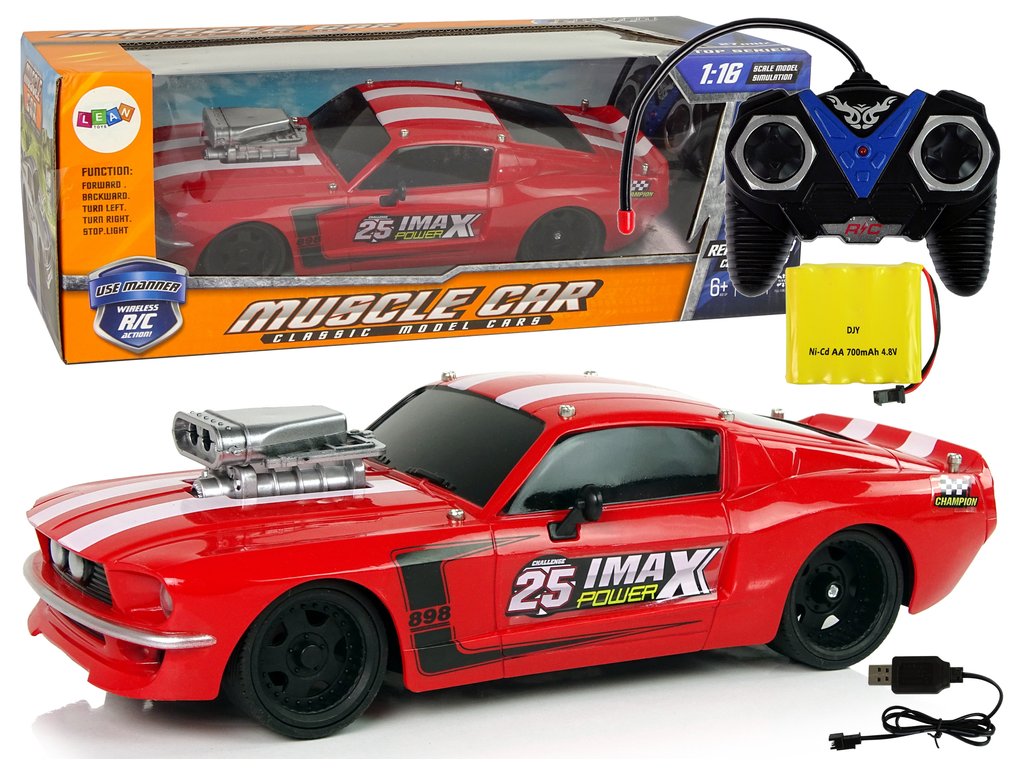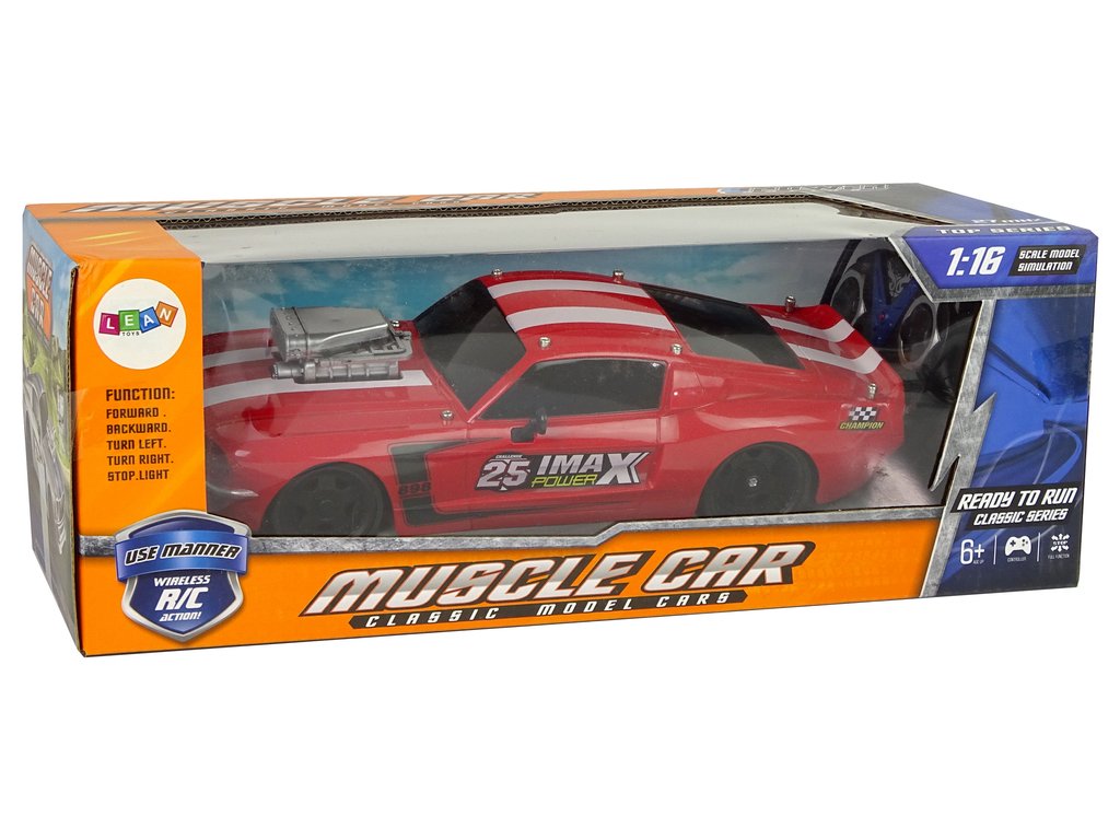 Přiložený dálkový ovladač vám umožní řídit malý model auta, má dvě samostatná tlačítka pro jízdu vpřed/vzad a jízdu ze strany na stranu. Model je vyroben v měřítku 1:16.