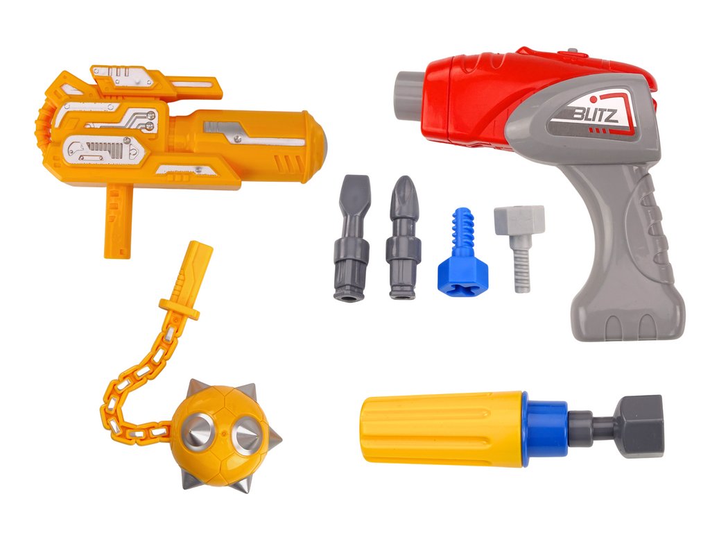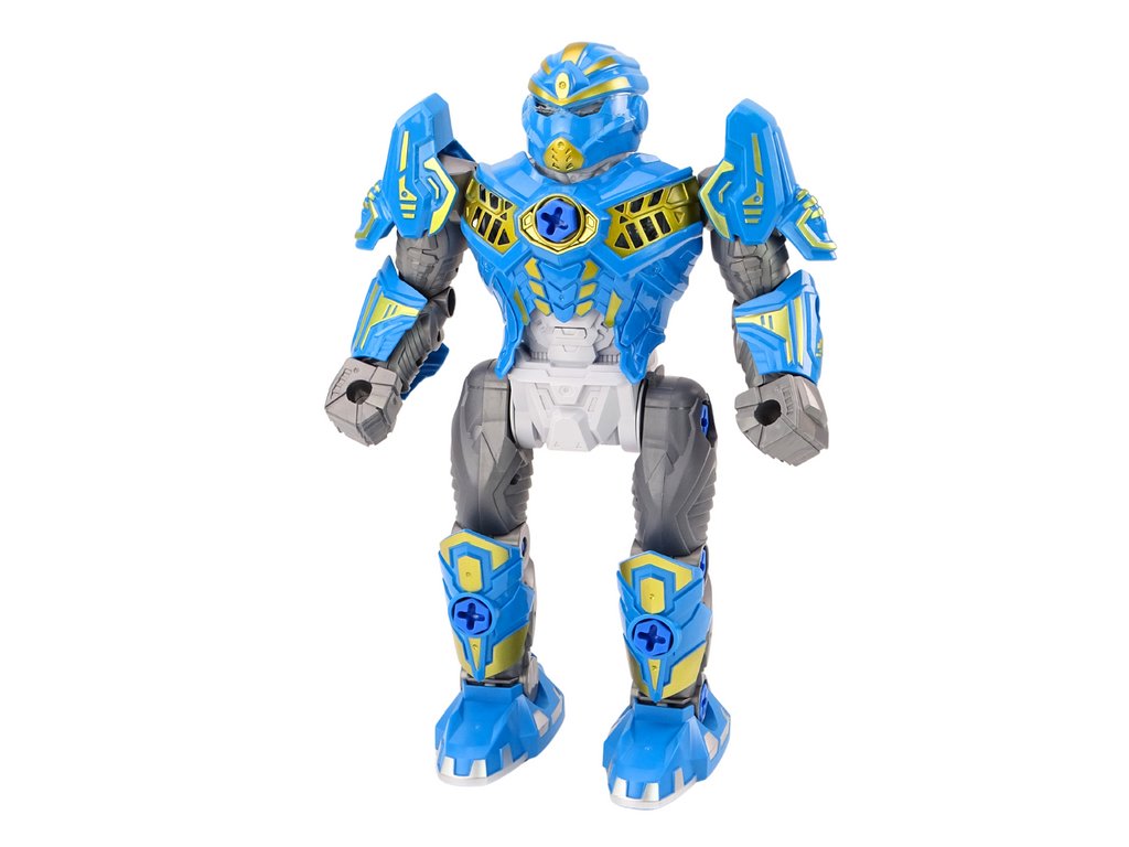 Robot je vybaven kyjem a zbraní v žluté barvě, což dodává hře prvek fantastického dobrodružství. Dítě si může představovat, že robot bojuje s nepřáteli nebo plní speciální mise, což rozvíjí jeho kreativitu a vyprávěcí schopnosti.