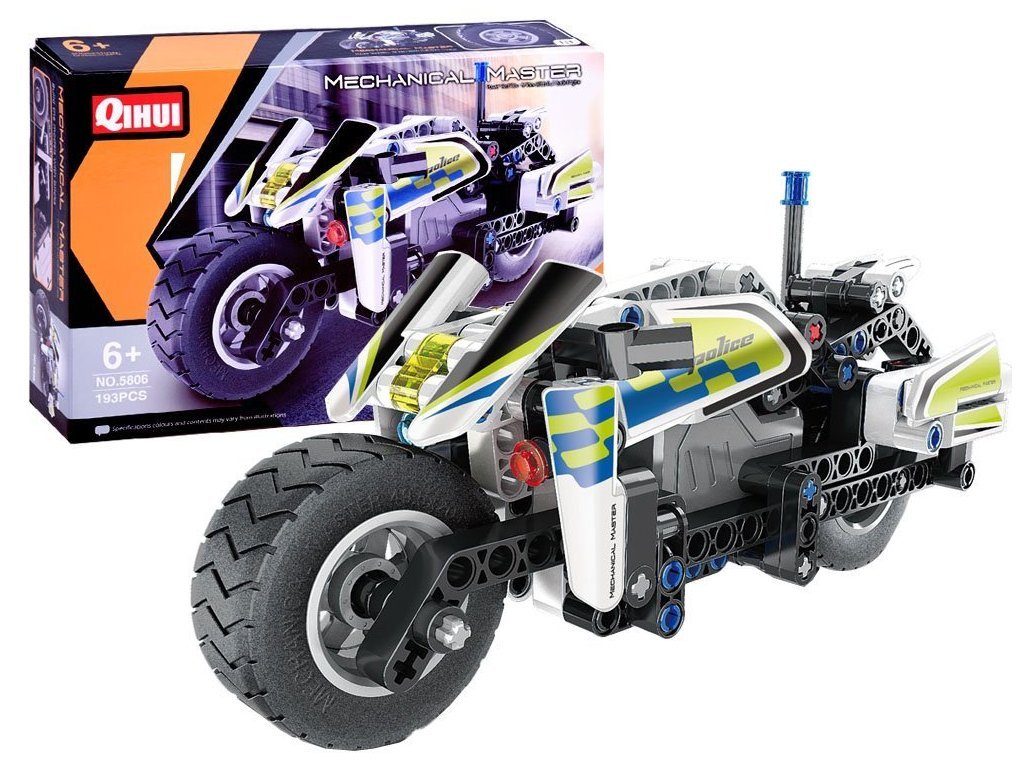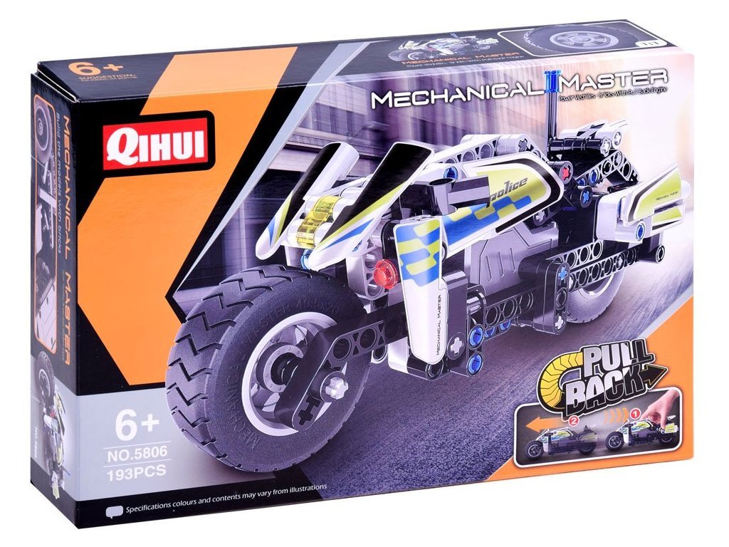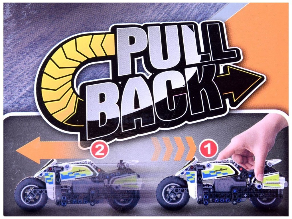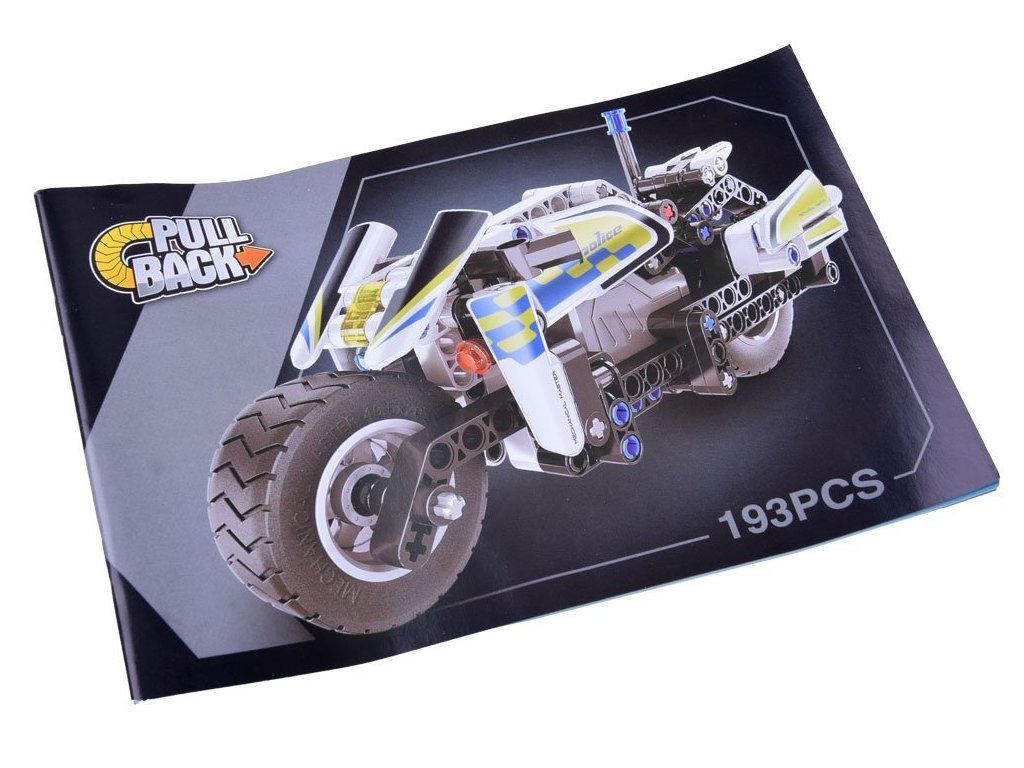 Počet prvků 193 může být malou výzvou, ale konečný výsledek vás určitě pozitivně překvapí a bude pro malého stavitele důvodem hrdosti. Motorka má pohon zpětného chodu, tj. Pohon napínáním pružin v kolech.