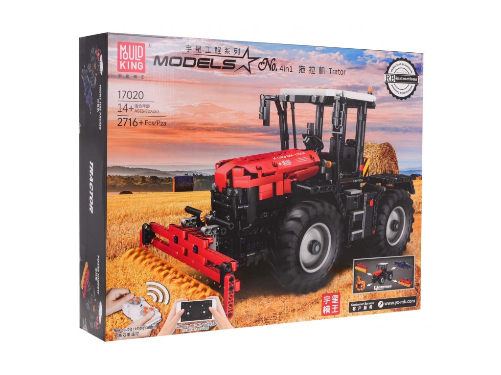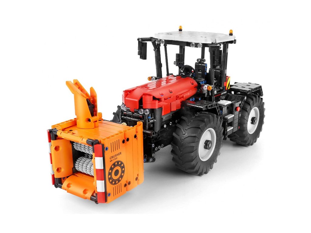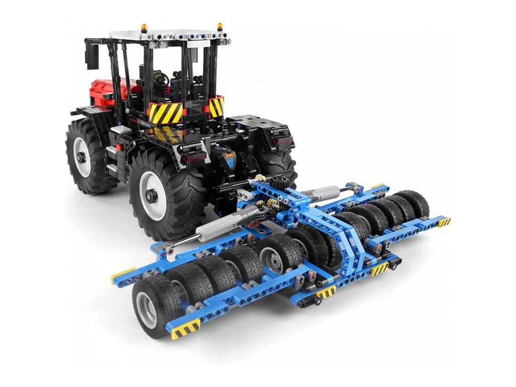Stavebnice se skládá z 2716 dílků, ze kterých lze postavit červený traktor na dálkové ovládání s vyměnitelnými prvky - kultivátor, drtič, lis, válec. Traktor má mnoho pohyblivých částí, jako je poklop motoru, lisovací ramena a dálkově ovládané prvky. Velká gumová kola zajišťují stabilní jízdu traktoru v každém směru. Traktor je napájen baterií typu 7,4 V (je součástí balení), dálkové ovládání 2 x AAA 1,5 V (nejsou součástí balení).