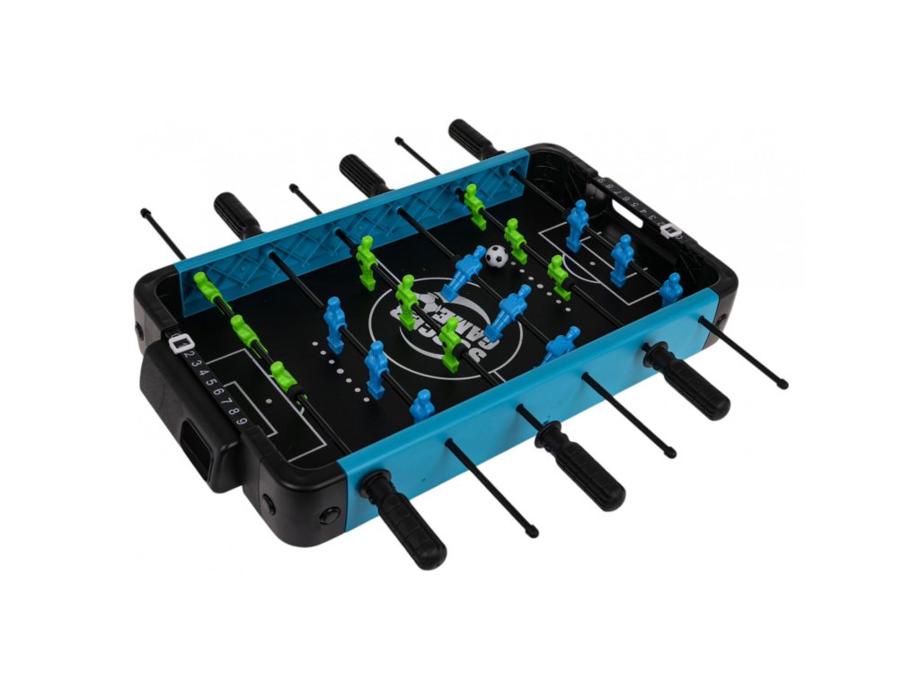 Stolní verze oblíbené hry určená pro dvě osoby pro děti od 5 let. Stůl je lehký a kompaktní, můžete si ho vzít kamkoli s sebou. Rukojeti se snadno otáčejí, montáž je velmi jednoduchá, návod a šroubovák jsou k dispozici v balení.