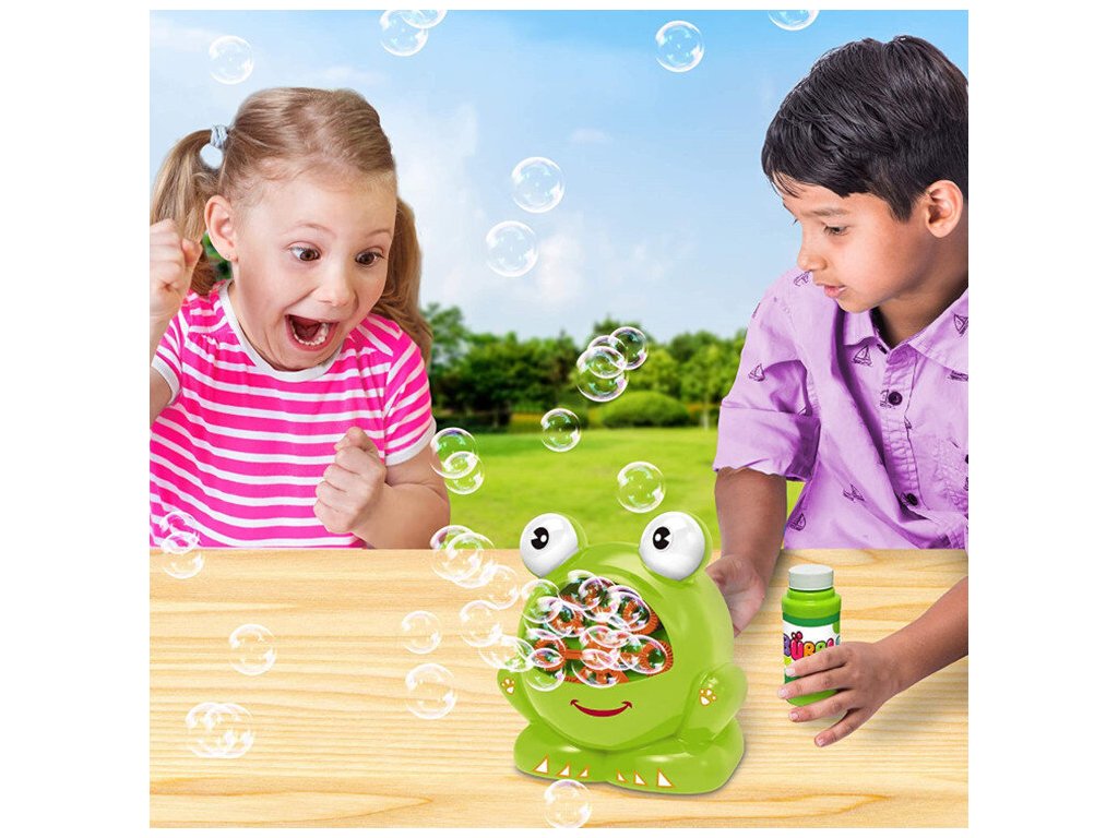 Bublifuk ve tvaru žáby promění každou chvíli v zábavné představení plné duhových bublin. Díky 8 otvorům vytváří stroj stovky bublin najednou, což zajišťuje nekonečnou radost pro děti i dospělé.