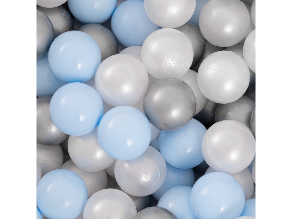 - Barvy míčků: světle modrá, stříbrná, perleťová