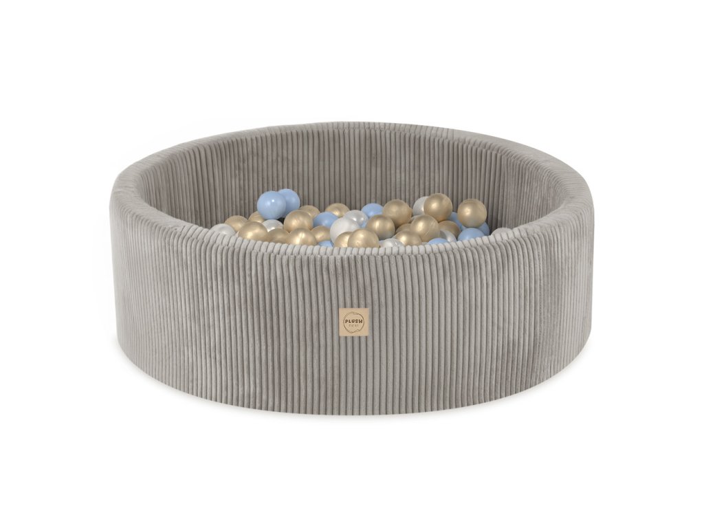 Univerzální šedobéžový odstín a vysoce kvalitní měkký prémiový kordurový materiál dělají z našeho suchého bazénku perfektní dárek.