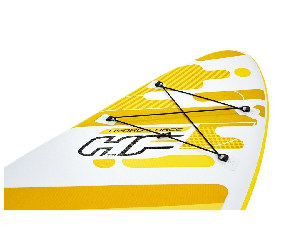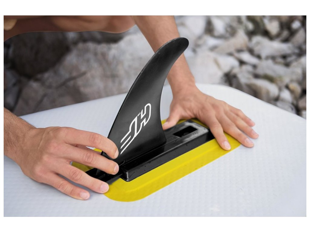 Lehké pádlo obsažené v sadě výrazně zjednodušuje způsob řízení. Odnímatelná ploutev zvyšuje sílu řízení a rychlost. Deska má velkou protiskluzovou trakční podložkou, která pomáhá udržet rovnováhu.