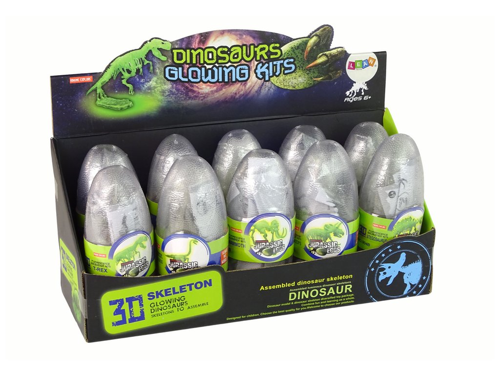 3D kostra dinosaura, která děti vtáhne do fascinujícího světa pravěku, udělá radost každému milovníkovi dinosaurů. Uvnitř transparentního vejce se skrývají díly pro sestavení svítící kostry dinosaura, která po složení zaujme nejen ve dne, ale i ve tmě. Kostra svítí ve tmě, což z něj dělá působivý doplněk do dětského pokoje i originální prvek pro večerní hraní. Velké vejce navíc přidává efekt překvapení a zvyšuje celkový zážitek z rozbalování.
