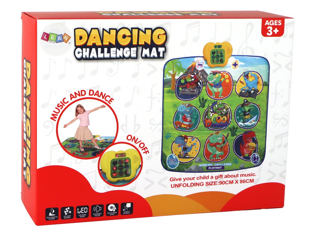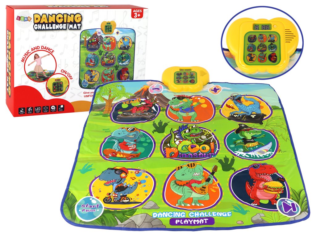 Taneční podložka s motivem dinosaurů je skvělá hra, které poskytne zábavu a aktivitu dětem i dospělým. Hlavním znakem, který tuto podložku odlišuje od ostatních, je monitor umístěný na jednom z jejích konců. Tento monitor vám umožňuje vybrat si jednu z pěti úrovní obtížnosti, což vám umožňuje přizpůsobit úroveň výzvy dovednostem tanečníka.