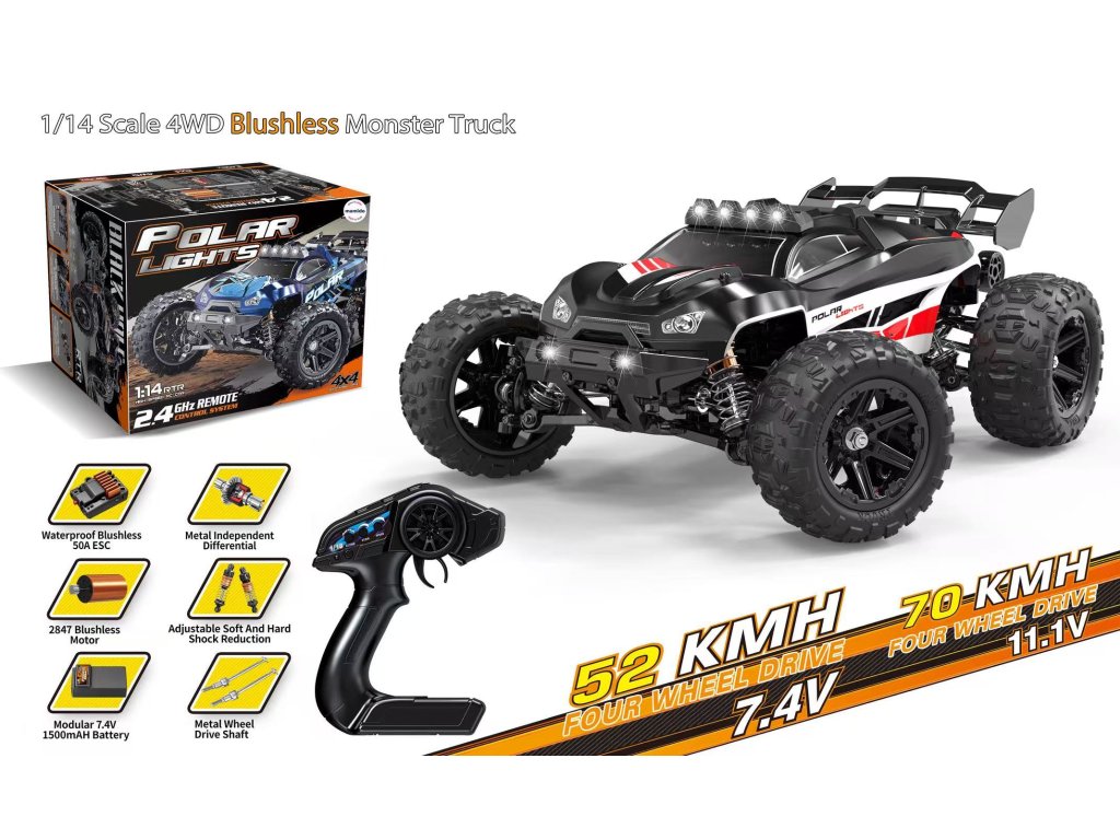 Terénní autíčko na dálkové ovládání Polar lights černé 1:14, rychlost 52 km/h, 4x4