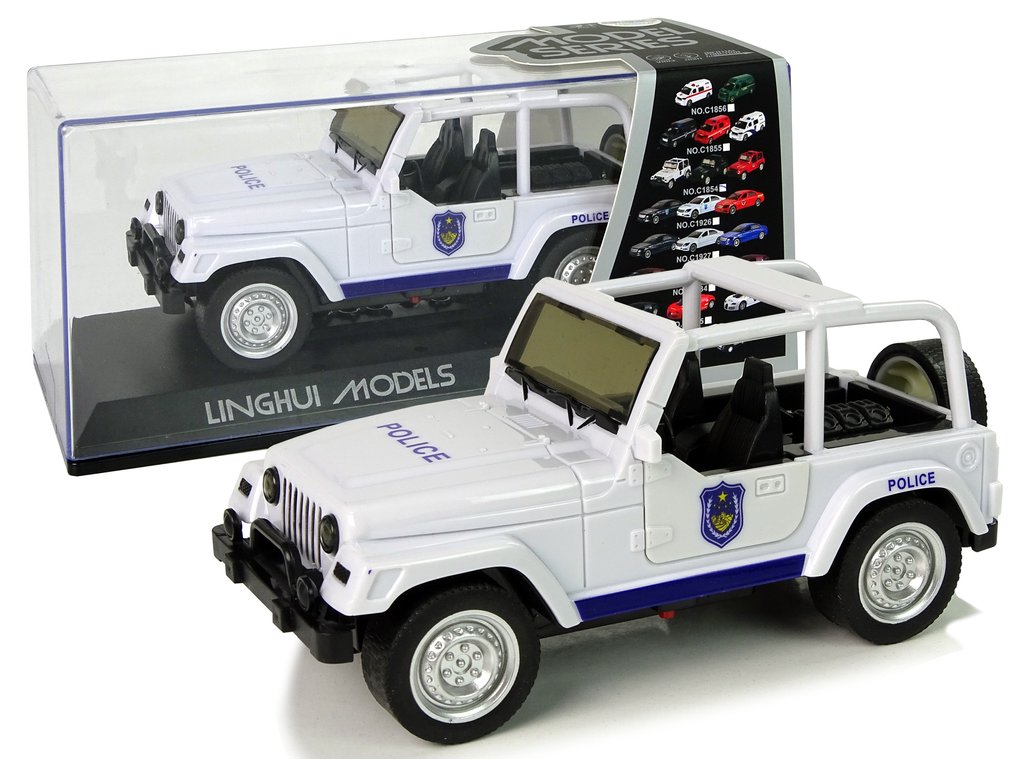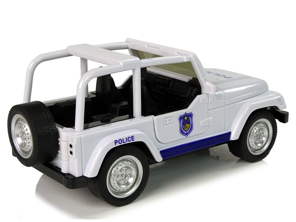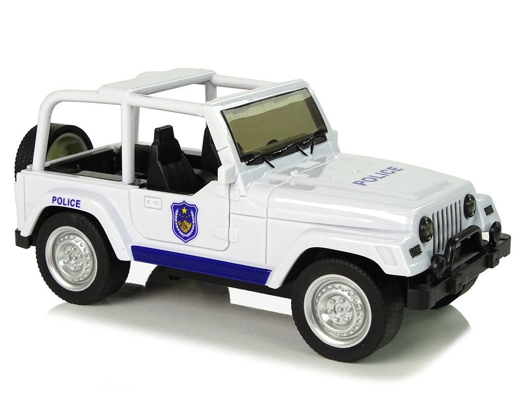 Terénní auto policie má zpětný pohon a je vyroben z plastu s pryžovými pneumatikami. Předek a bok bílého vozu mají modré vzory, nápisy POLICE a pruhy. Má otevírací přední dveře a rezervní kolo.